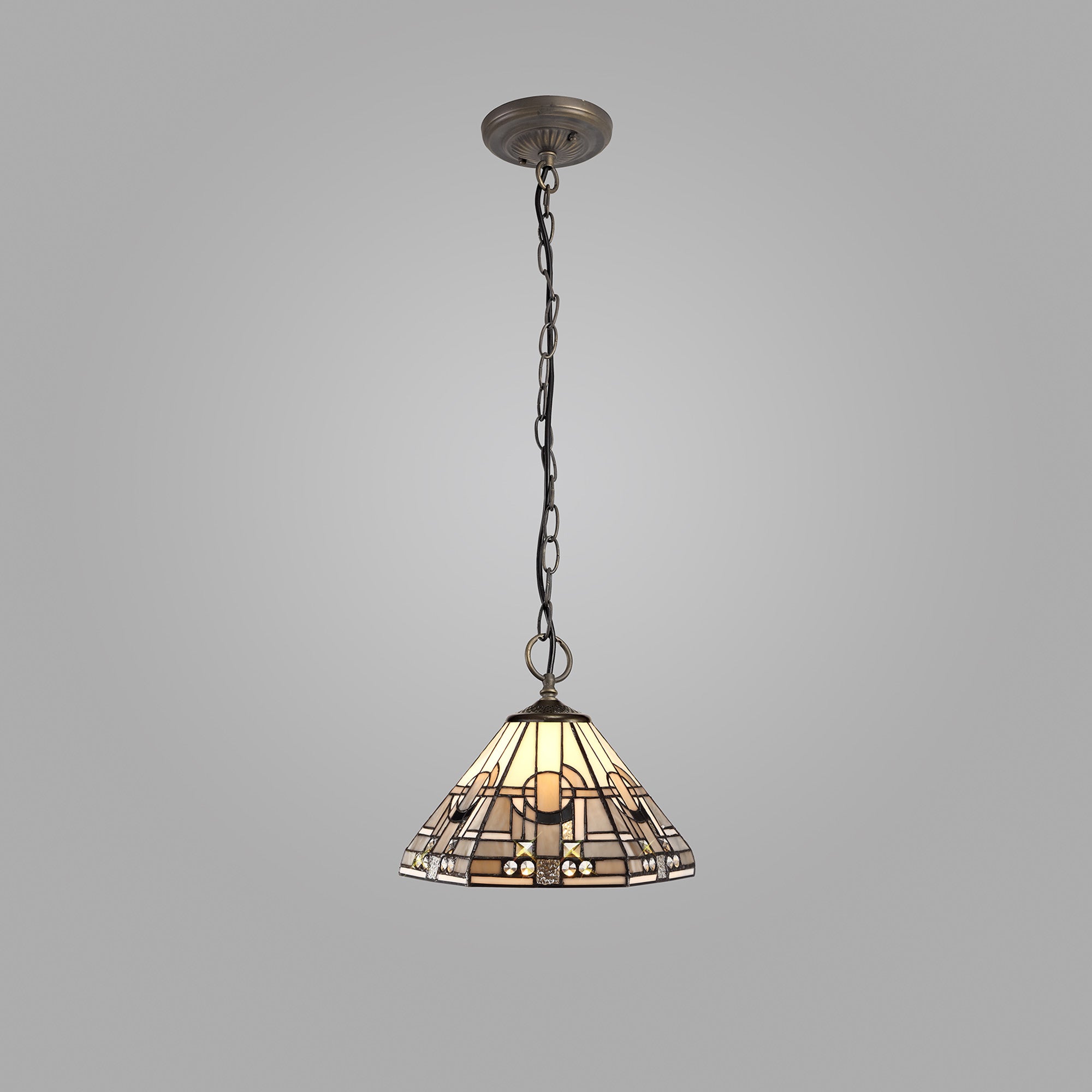 Atek 3 Light Downlighter Pendant E27 With 30cm Tiffany Shade, White/Grey/Black/Clear Crystal/Aged Antique Brass
