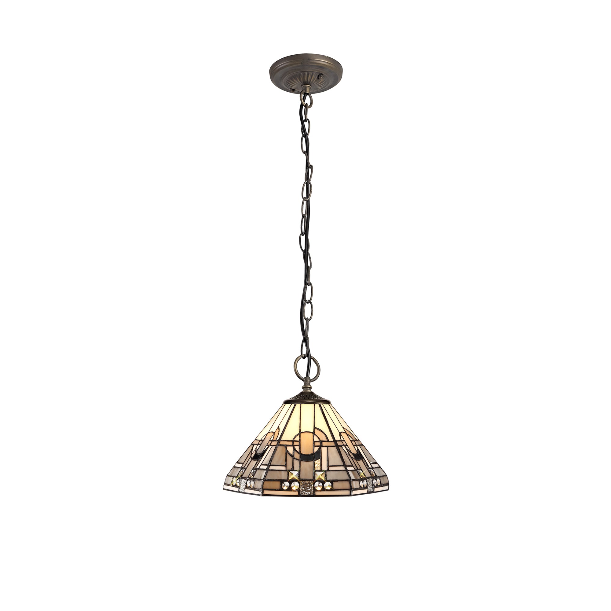 Atek takes its name from the inspiration of its design. The vintage effect of the Tiffany glass is interpreted to reflect Aztecan artistic creations with the shapes and positioning of the glass pieces being furthered by the shape of the shade itself. Giving this range a subtle modern edge the shades are embedded with clear crystal pieces in keeping with the monochrome palette of coloured glass. Combined with the table lamp and ceiling light this range would be perfect in any room.