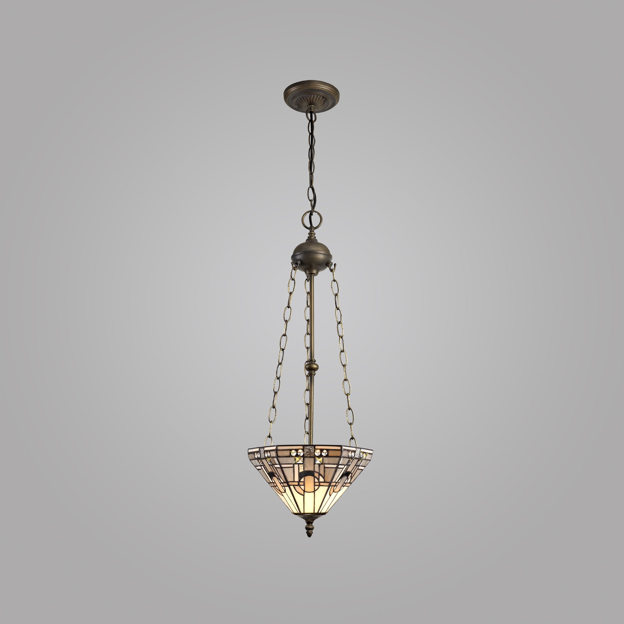 Atek 3 Light Uplighter Pendant E27 With 30cm Tiffany Shade, White/Grey/Black/Clear Crystal/Aged Antique Brass