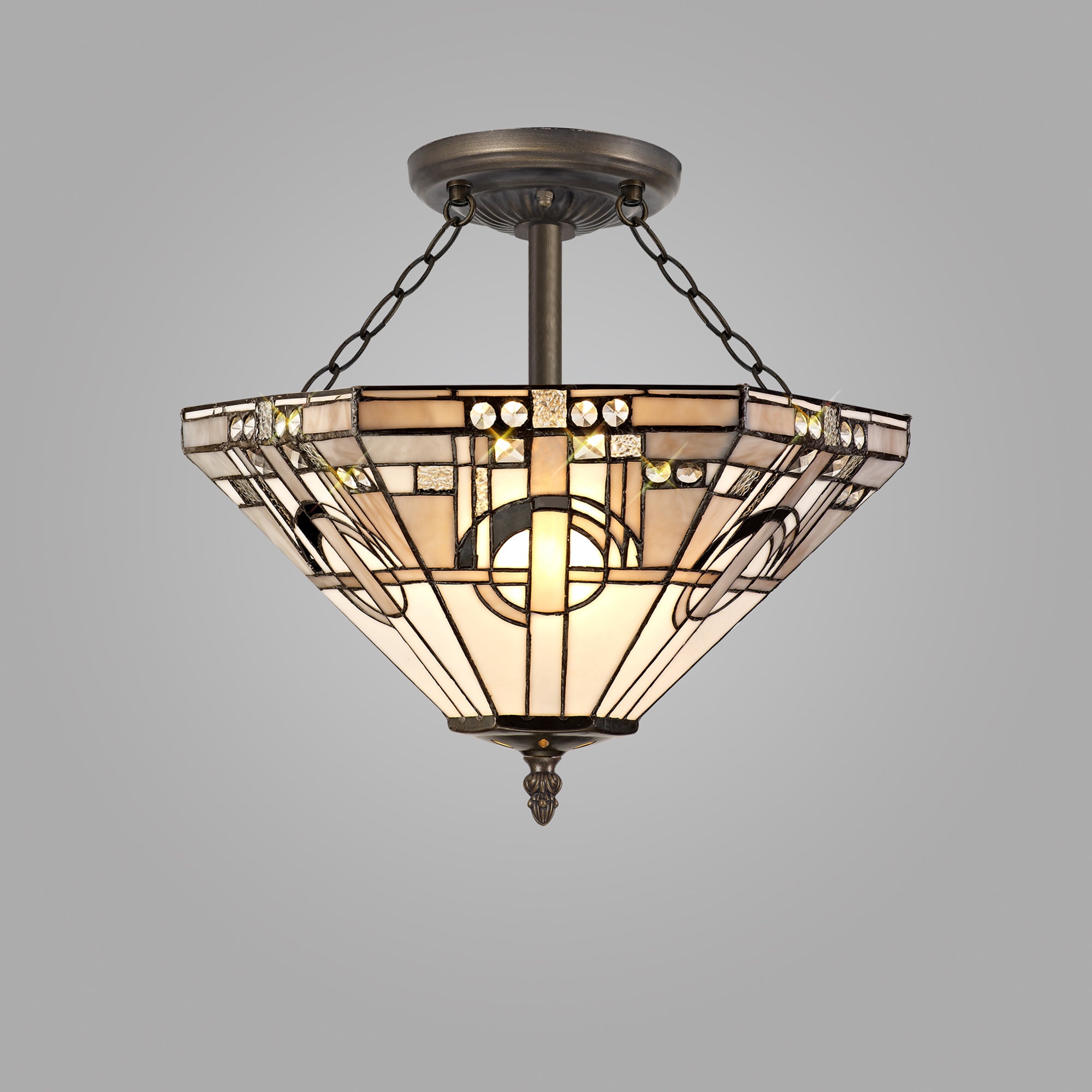 Atek 3 Light E27 Semi Ceiling With Tiffany Shade 40cm Shade, White/Grey/Black/Clear Crystal/Aged Antique Brass