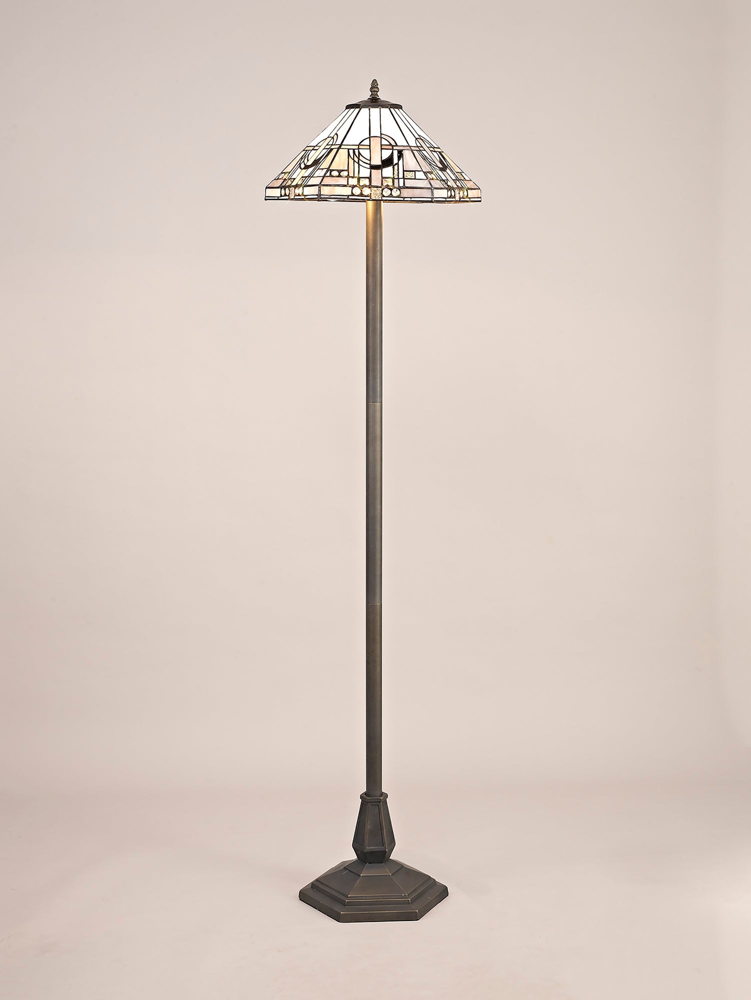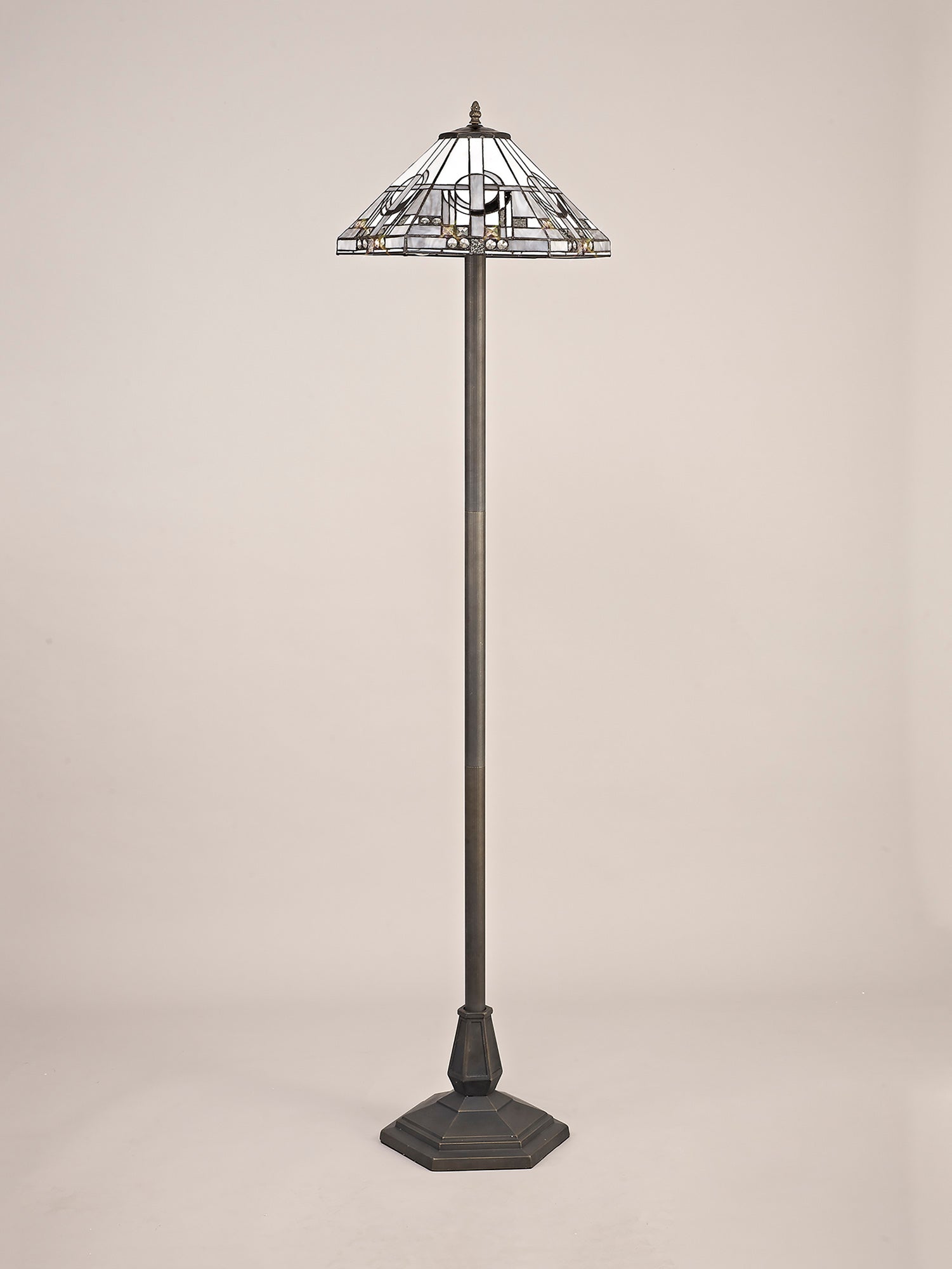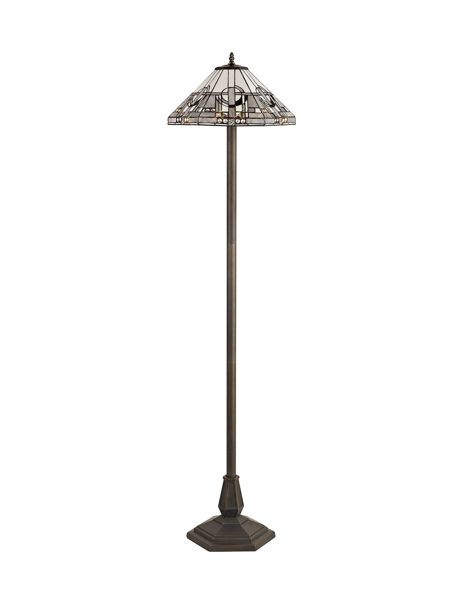 Atek 2 Light Octagonal Floor Lamp E27 With 40cm Tiffany Shade, White/Grey/Black/Clear Crystal/Aged Antique Brass