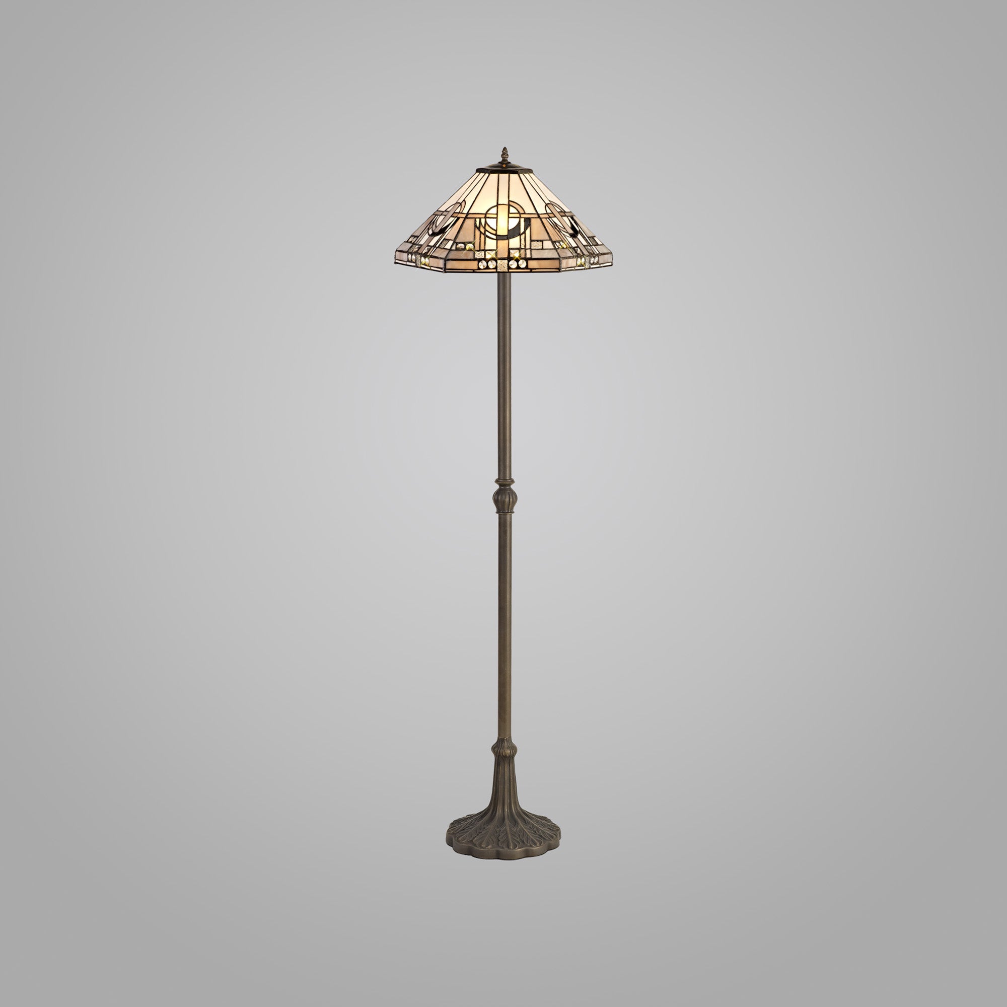 Atek 2 Light Leaf Design Floor Lamp E27 With 40cm Tiffany Shade, White/Grey/Black/Clear Crystal/Aged Antique Brass