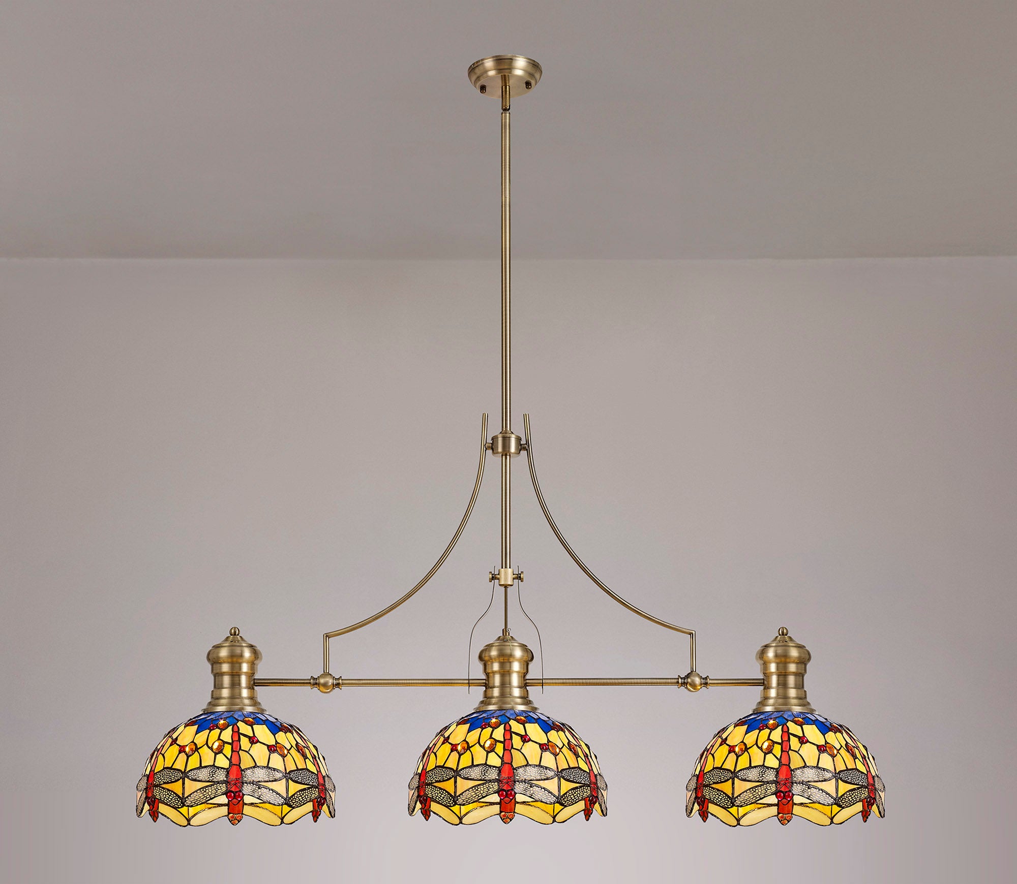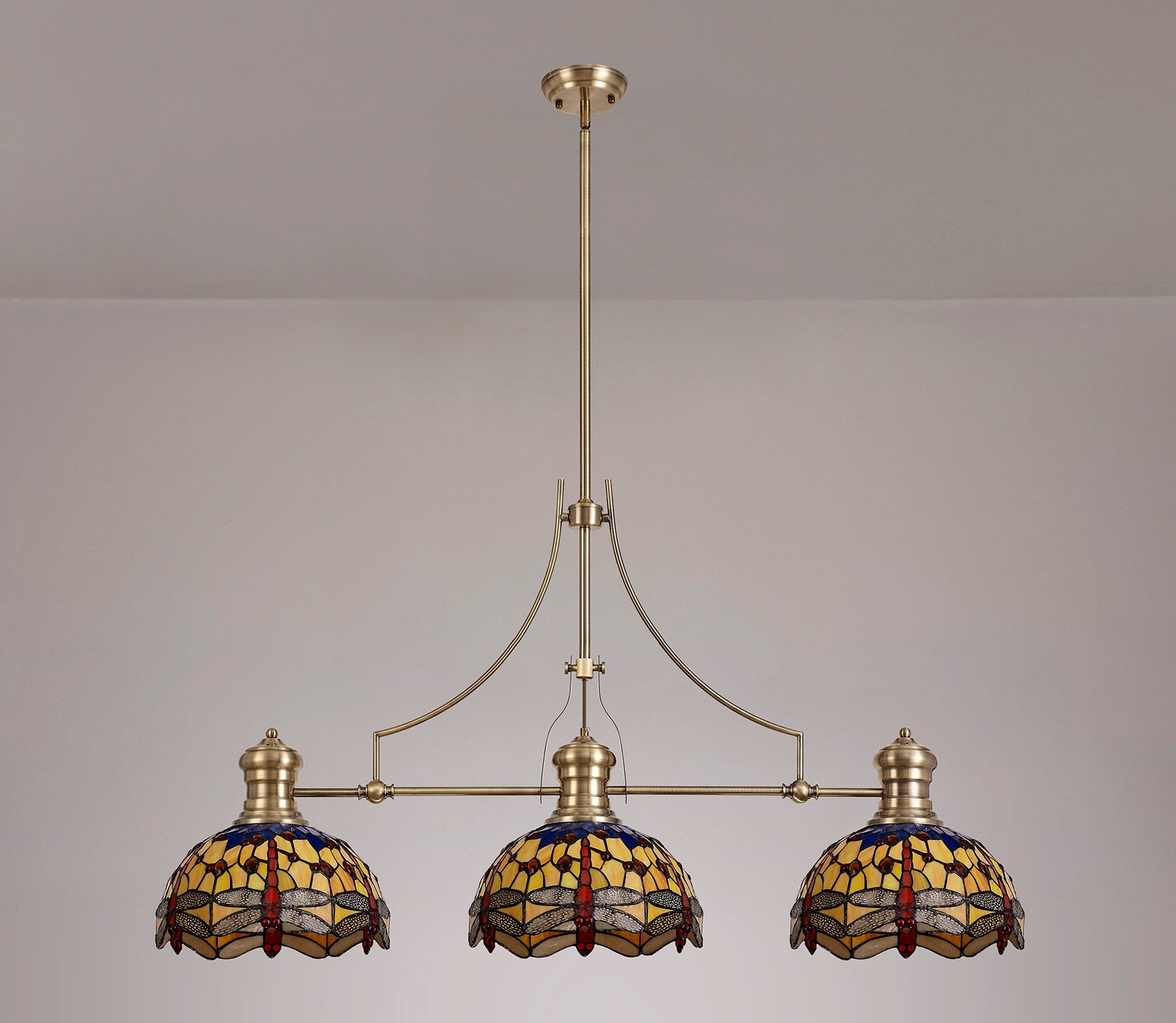 Docker, flyhi 3 Light Linear Pendant E27 With 30cm Tiffany Shade, Antique Brass, Blue, Orange, Crystal