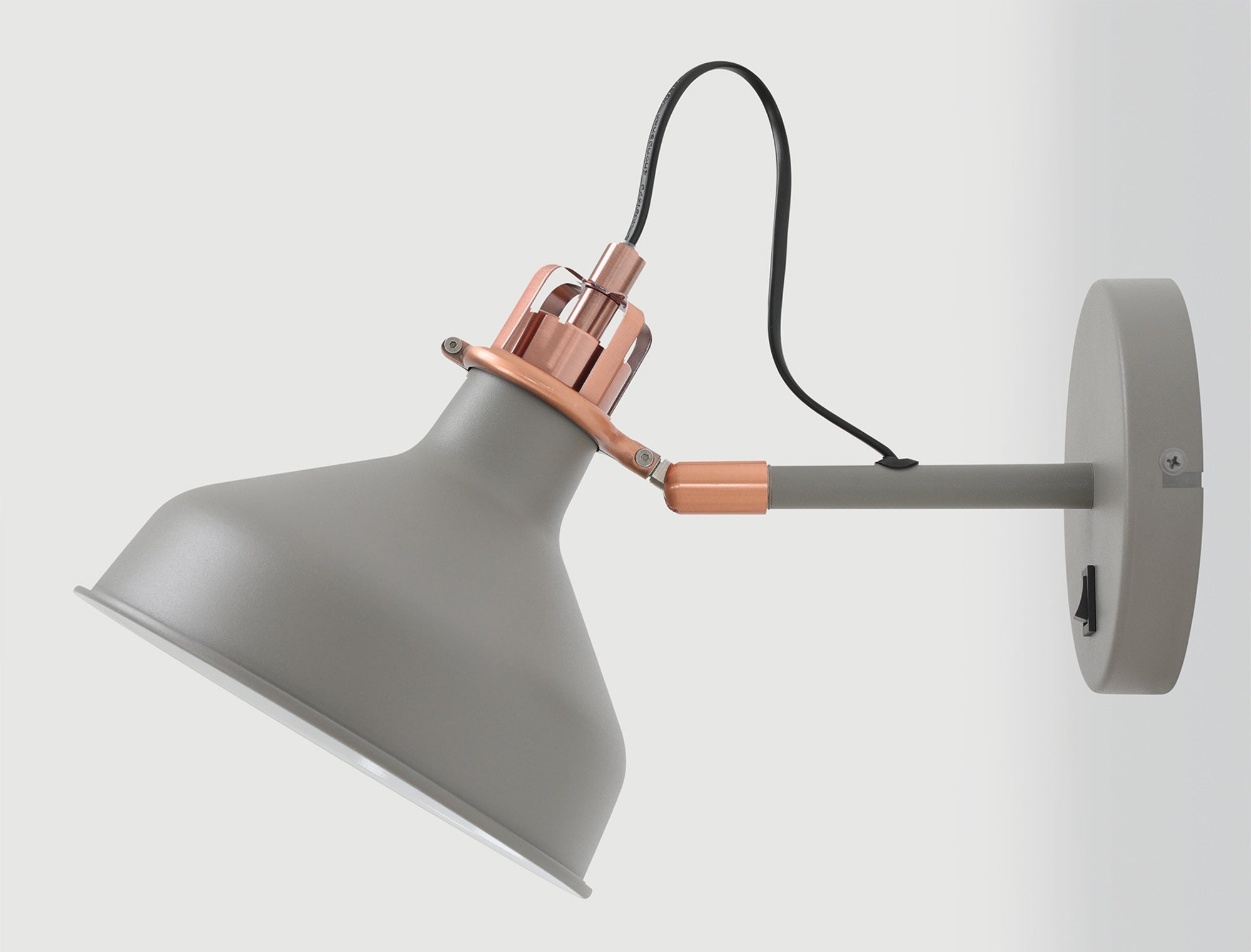 Banker Adjustable Wall Lamp Switched, 1 x E27, Sand Grey/Copper/White