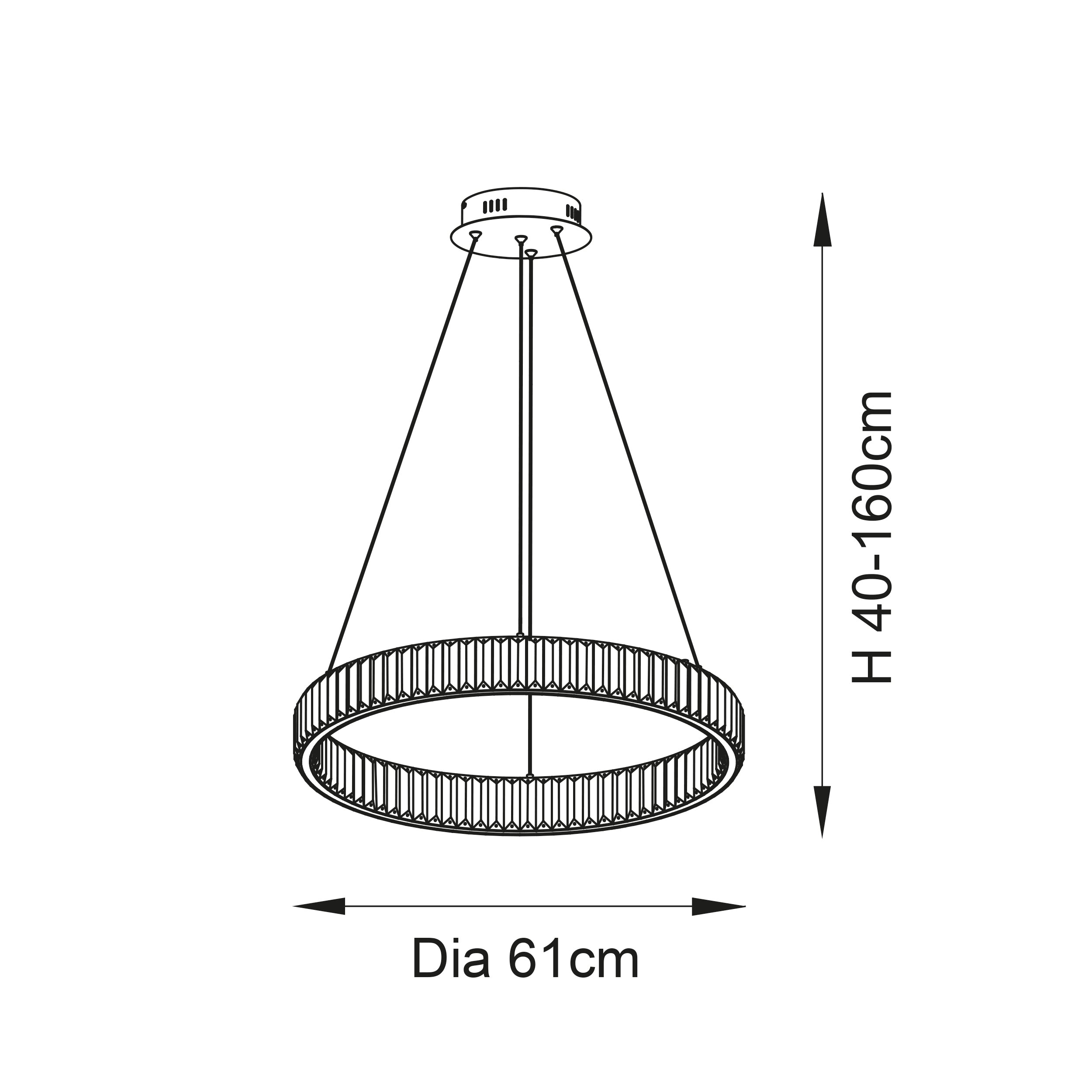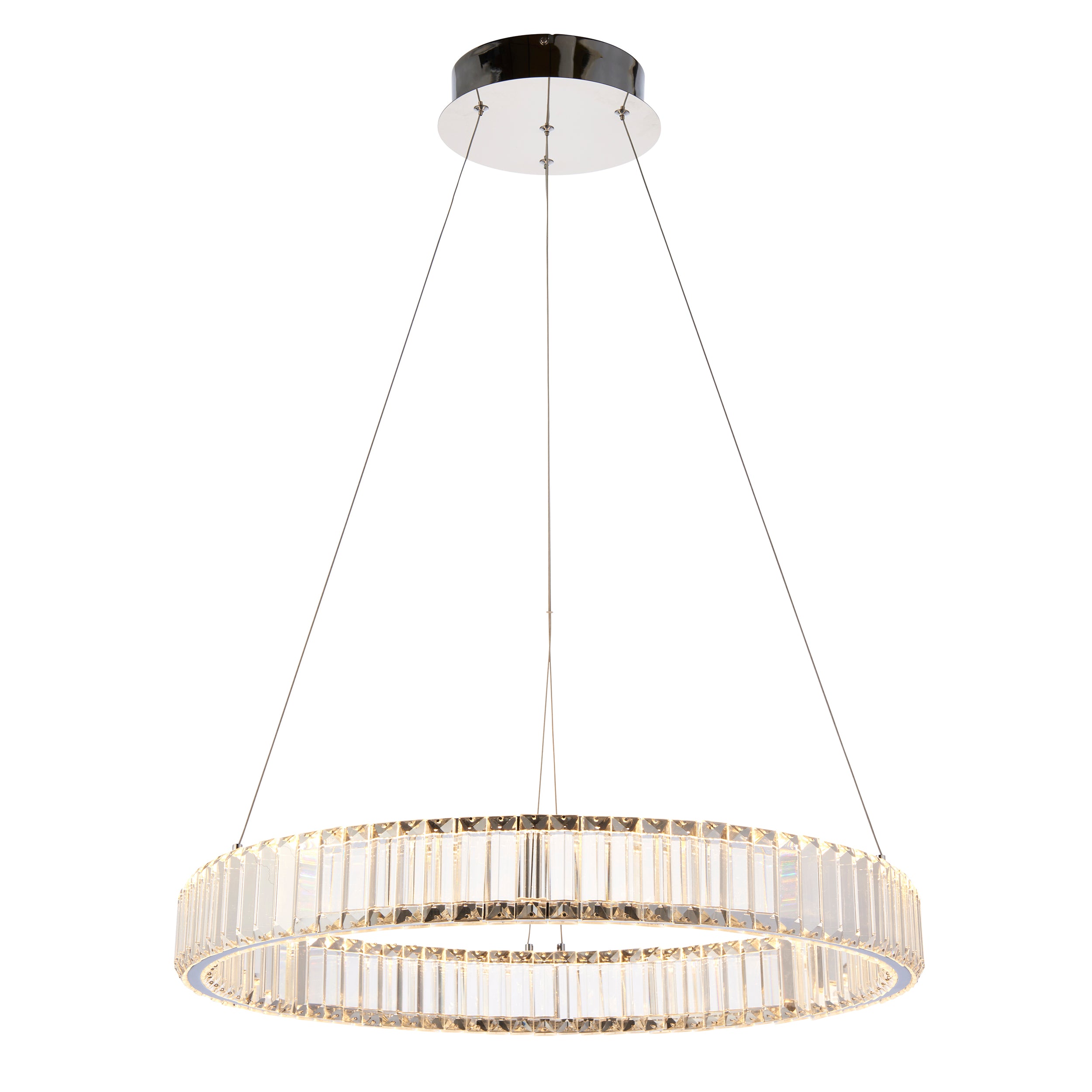 Create a halo effect with this cut crystal LED pendant. The contemporary hoop design is suspended via height-adjustable cables and features exquisite, faceted crystals and polished chrome metalwork.