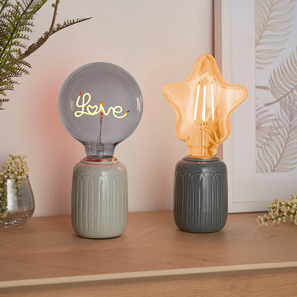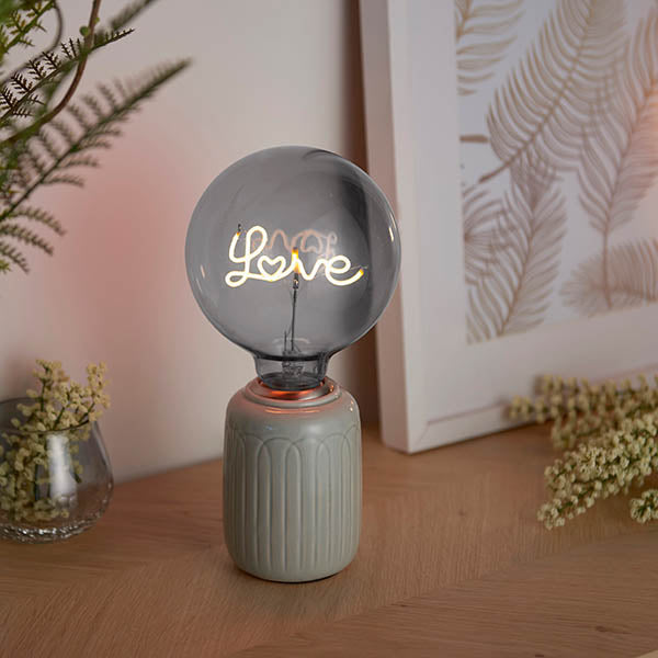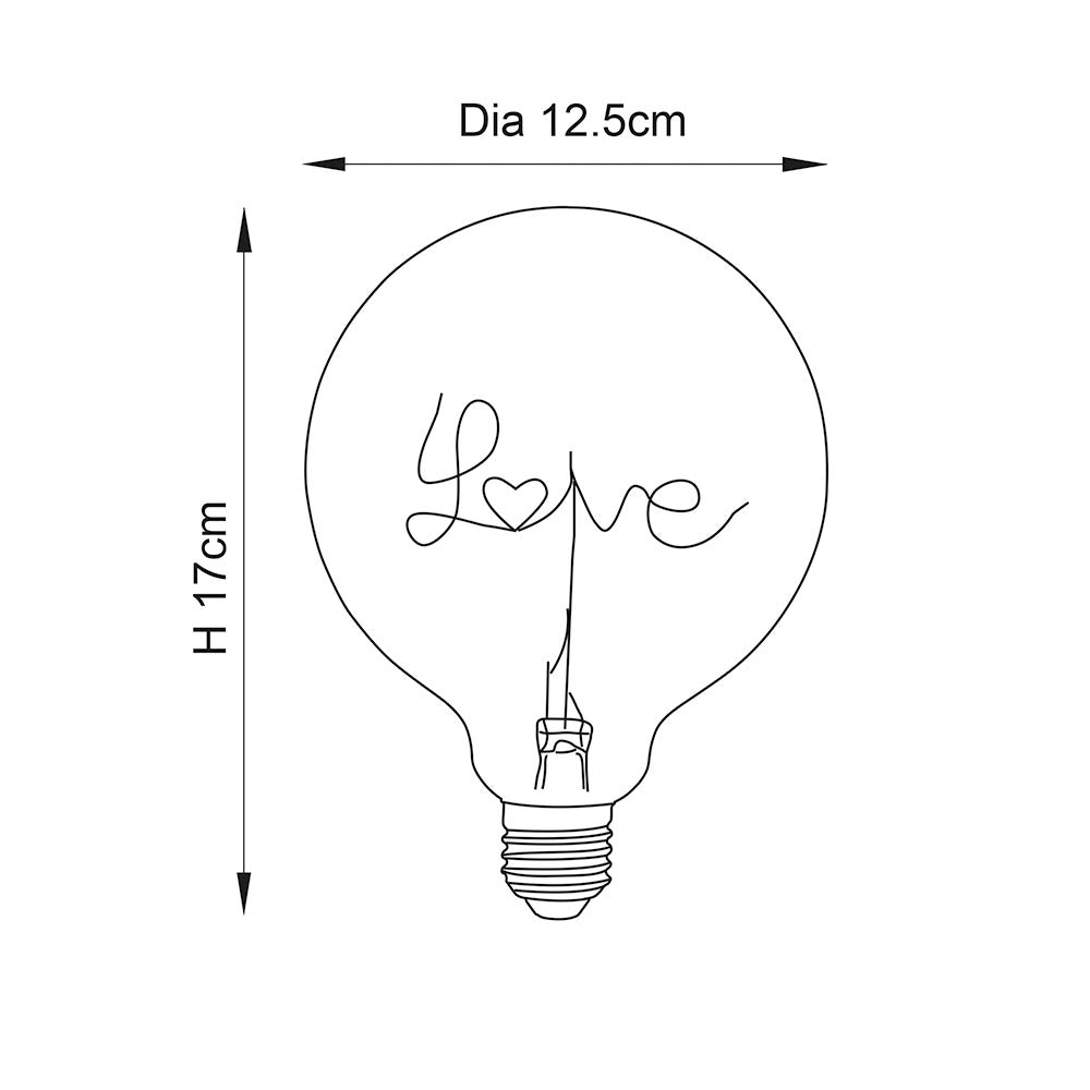 "Spread a little love" with this cool LED filament lamp, use with one of our designer table light bases for the ultimate on trend look.
