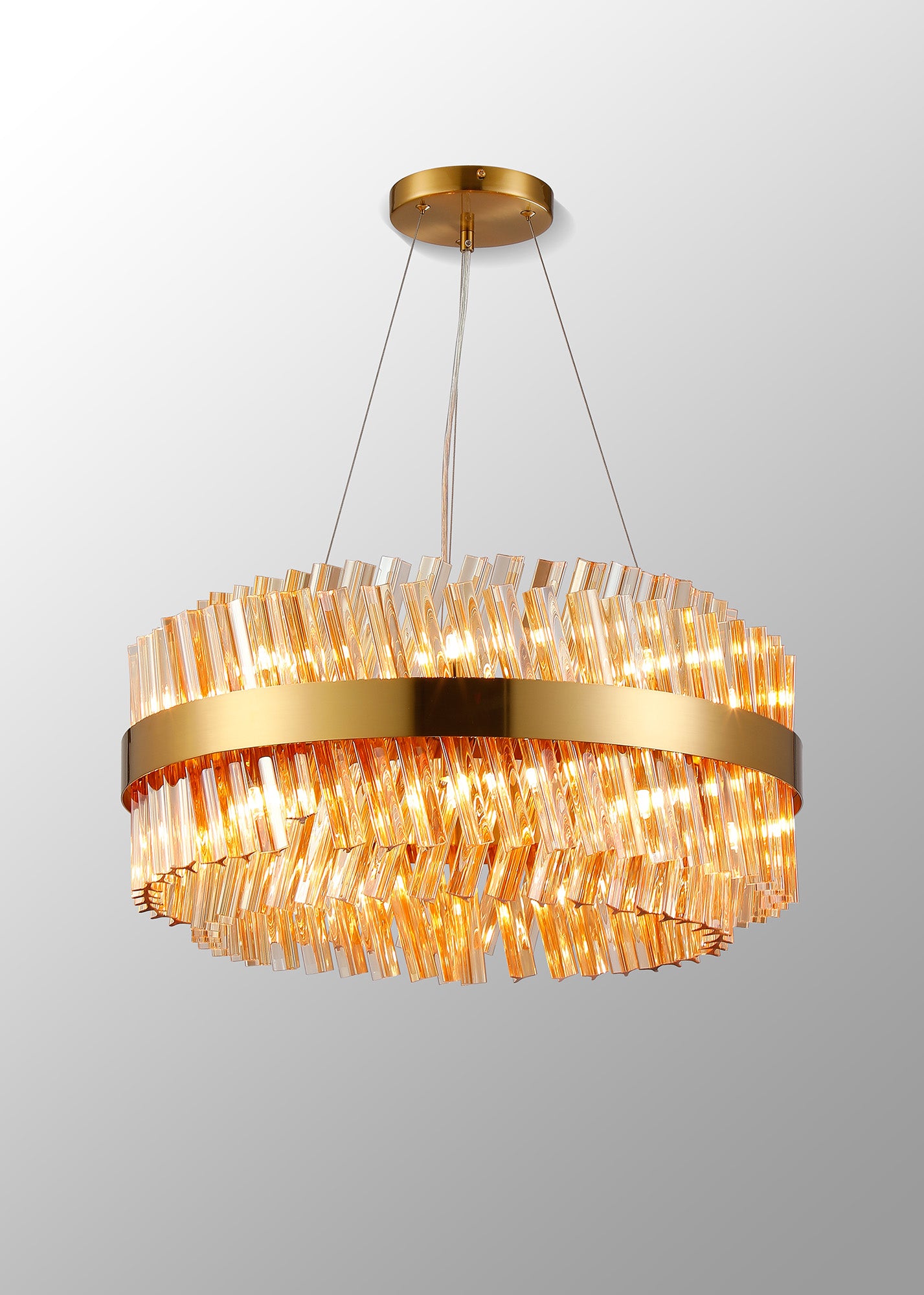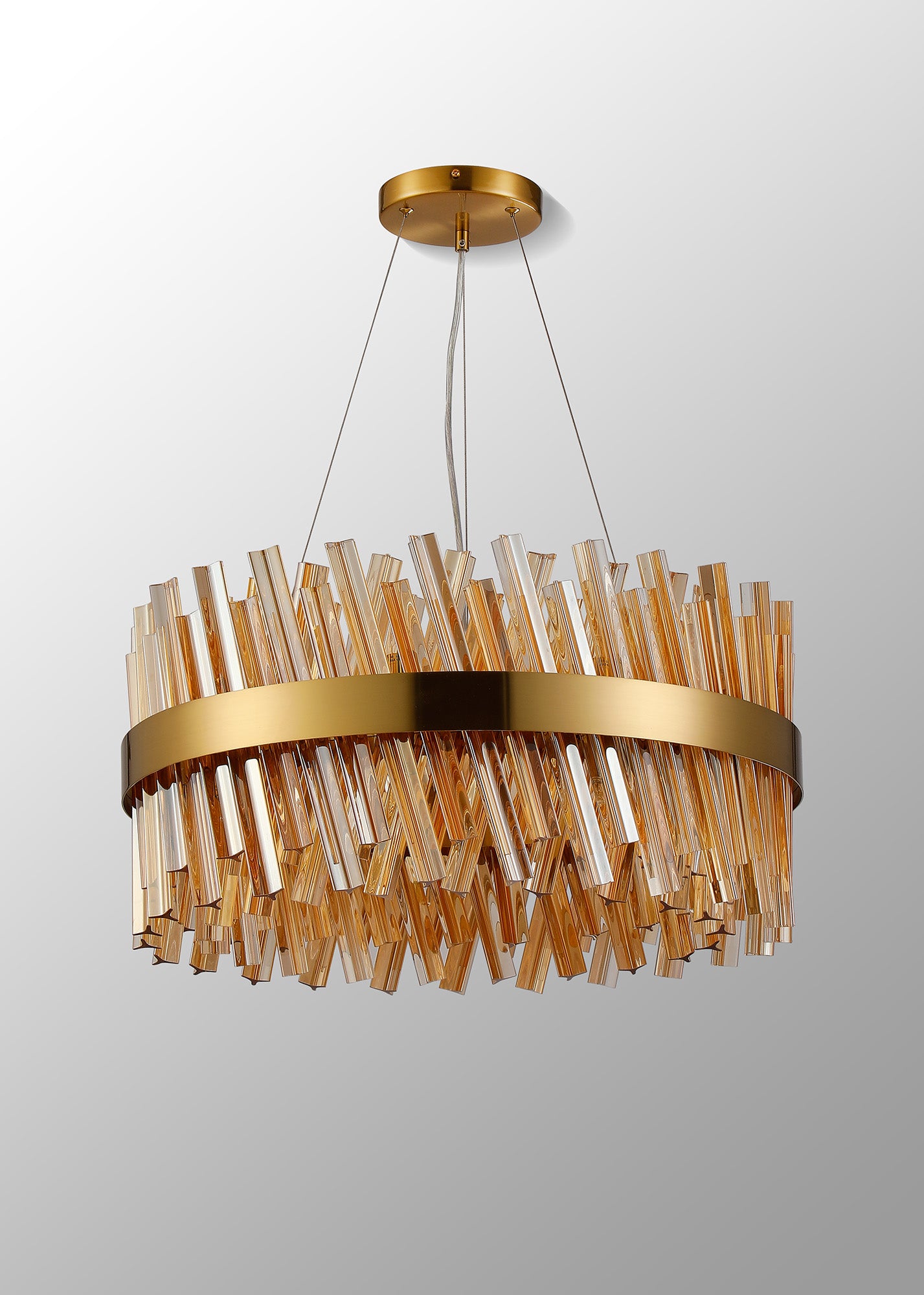 Lightologist Paddington 18 Light G9, Pendant Round, Brass / Amber Item Weight: 16.81kg LO19500BR/AM3