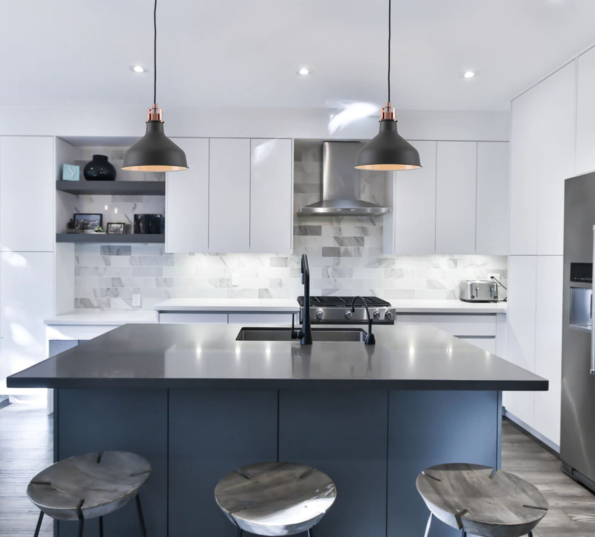 Banker Small Pendant, 1 x E27, Graphite/Copper/White