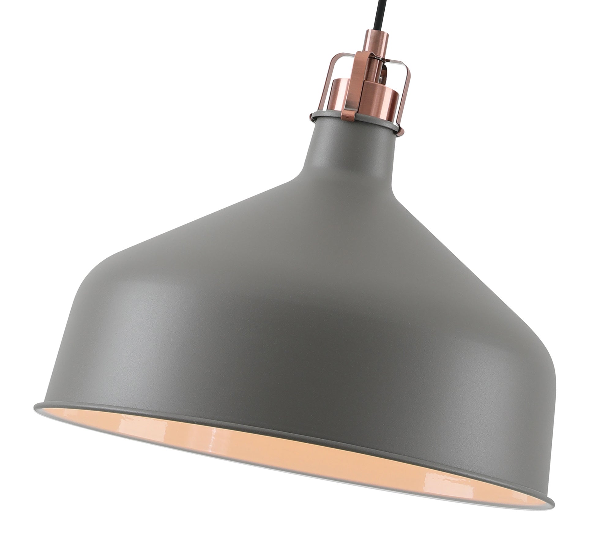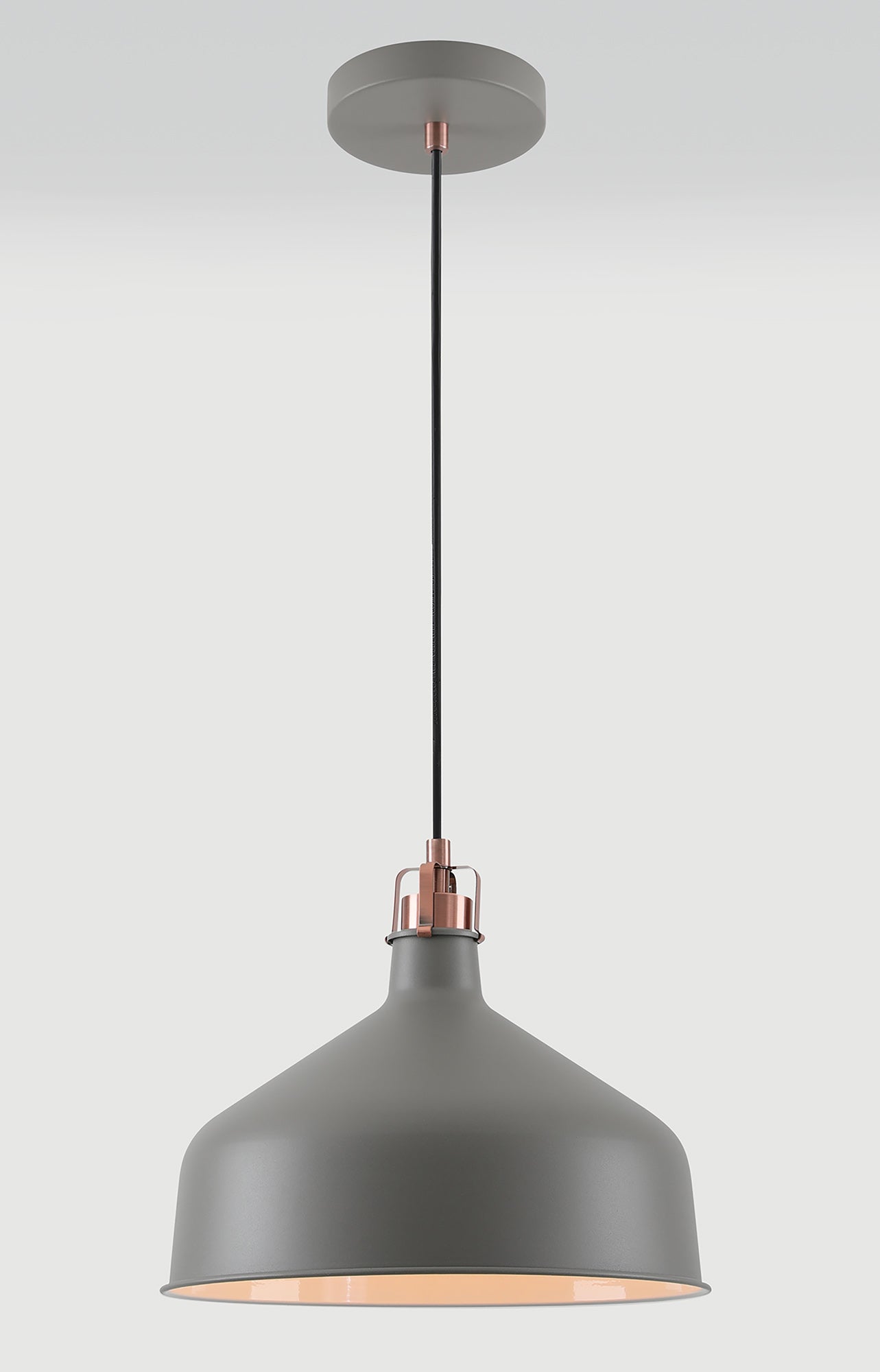 Banker Medium Pendant, 1 x E27, Sand Grey/Copper/White