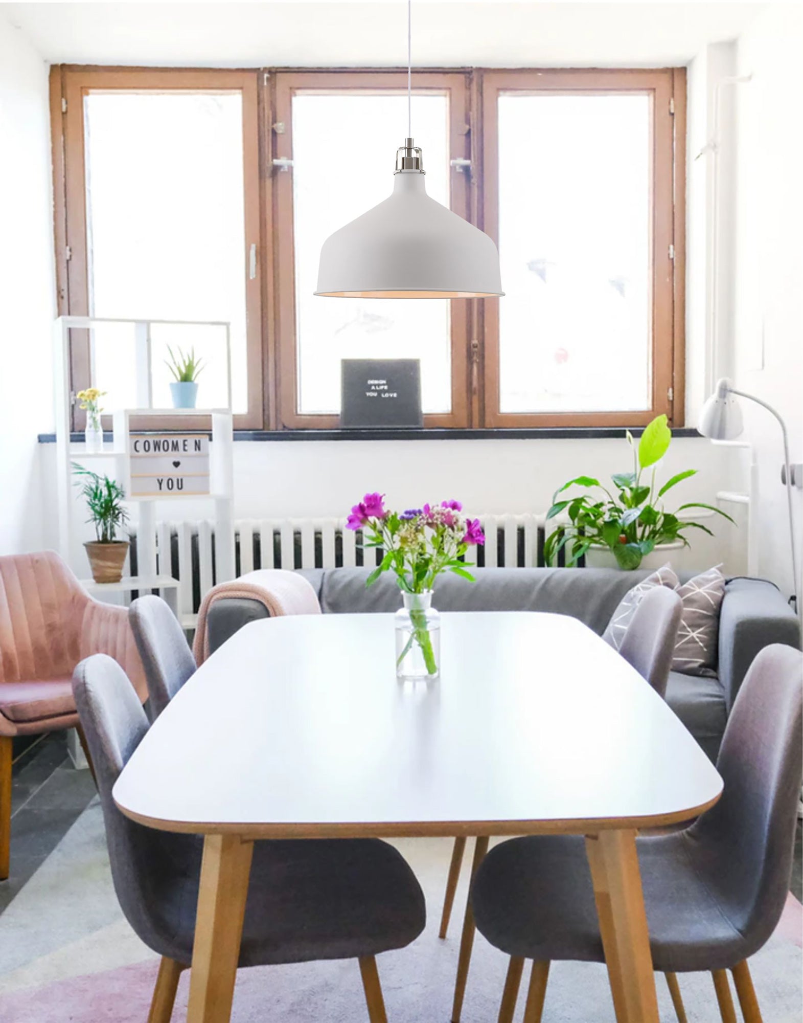 Banker Medium Pendant, 1 x E27, Sand White/Satin Nickel/White