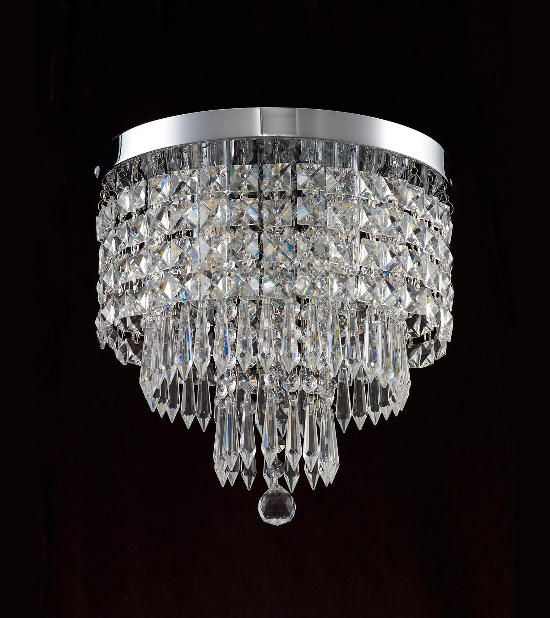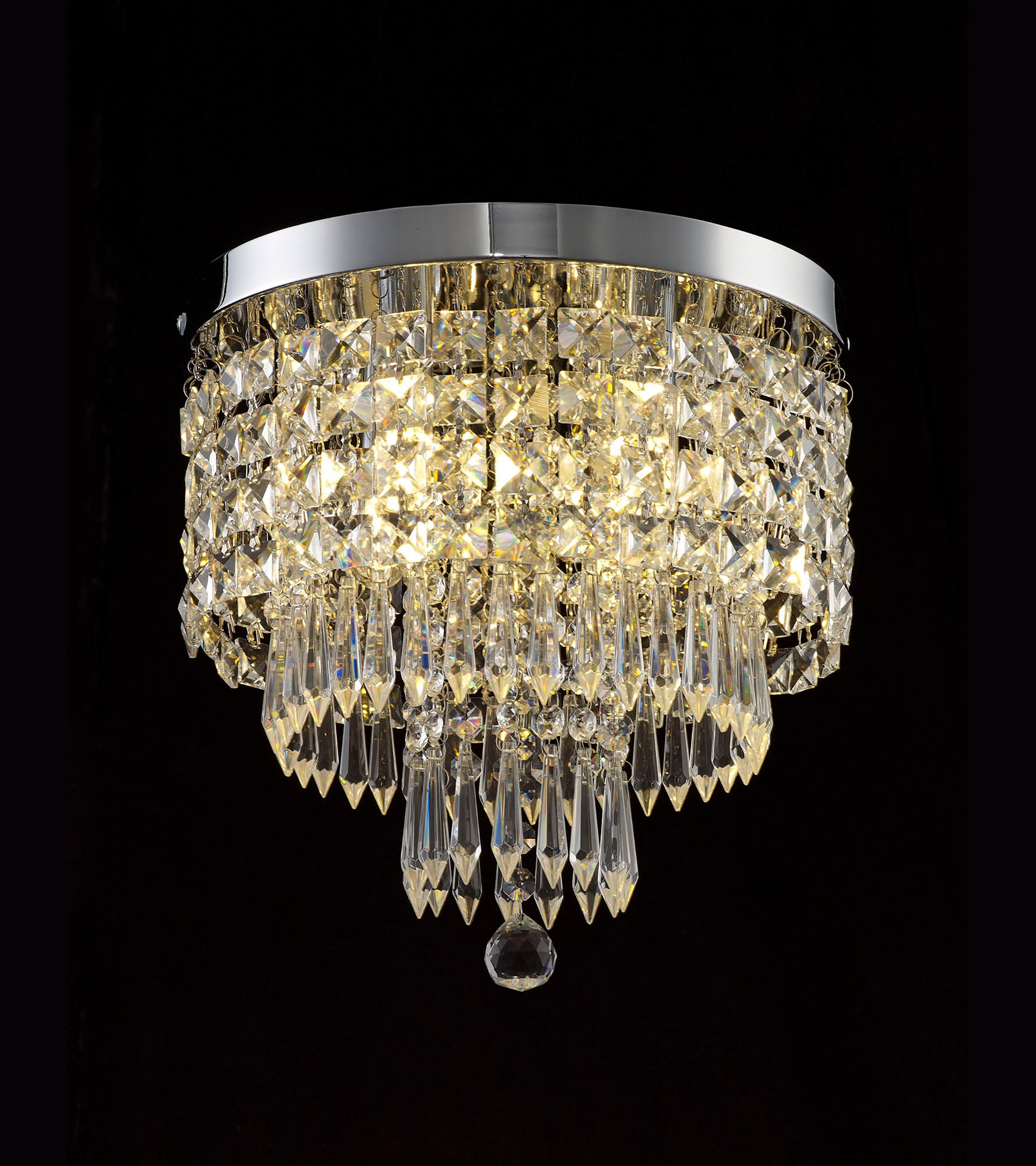 Ailsa hosts a mixture of different crystal cuts and shapes. The outer ring features the strands of square shaped crystal and the very centre drop holds a clear crystal sphere. The most unique crystal pieces on this ceiling light are the icicles around the middle of the fitting which hang visibly beneath the squares. These crystals, mimicing water icicles, are a clever choice for the Ailsa ceiling light as the IP44 rating makes it suitable for bathroom use.