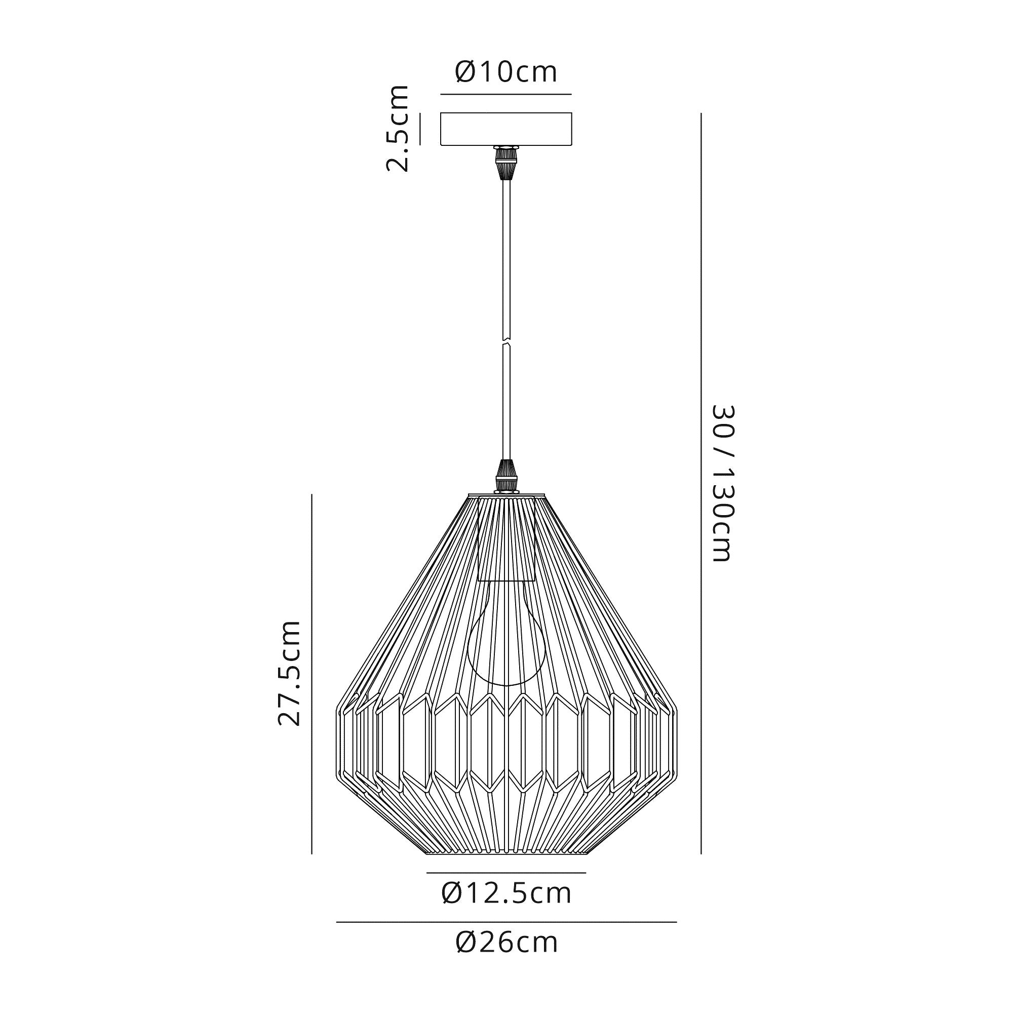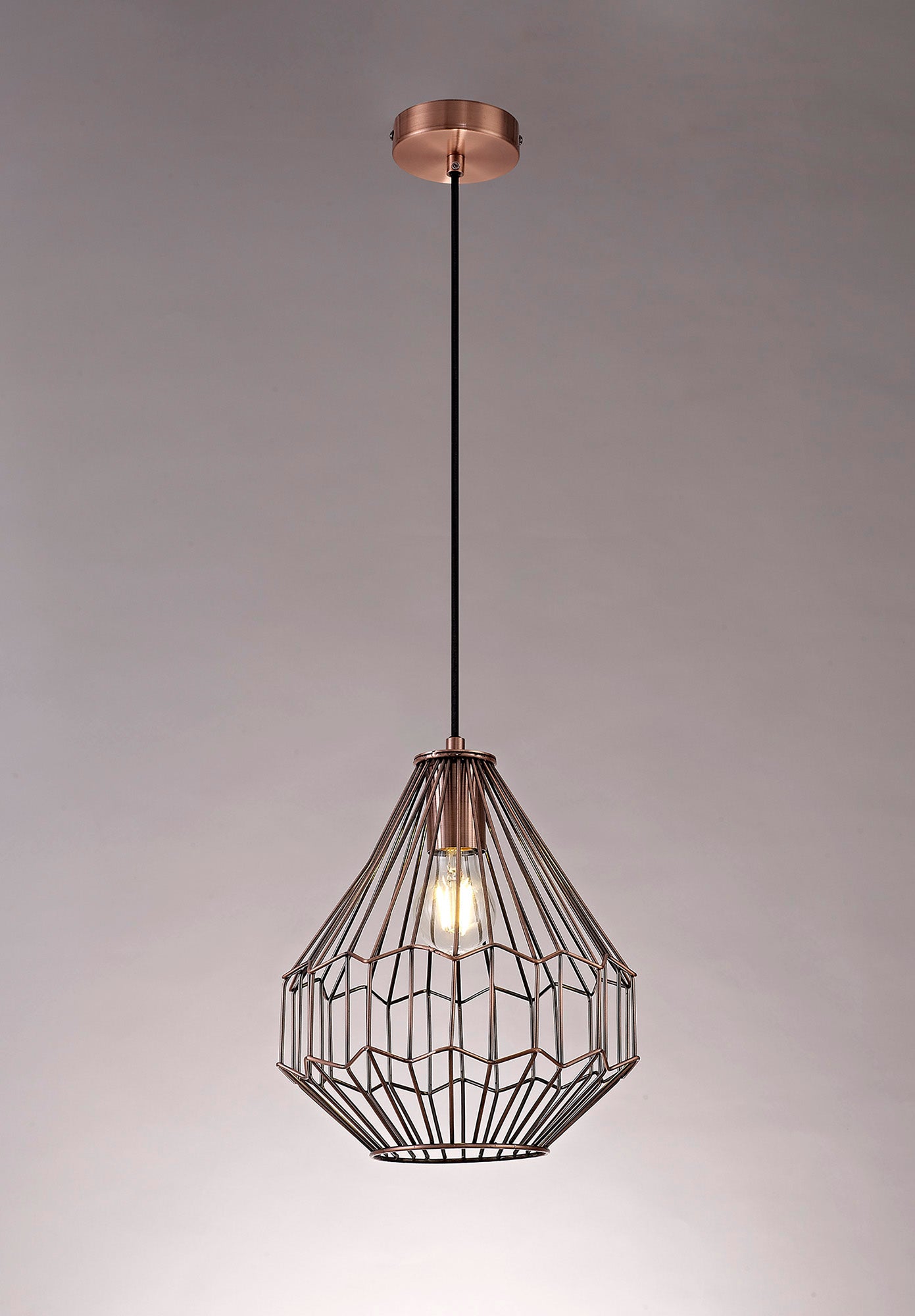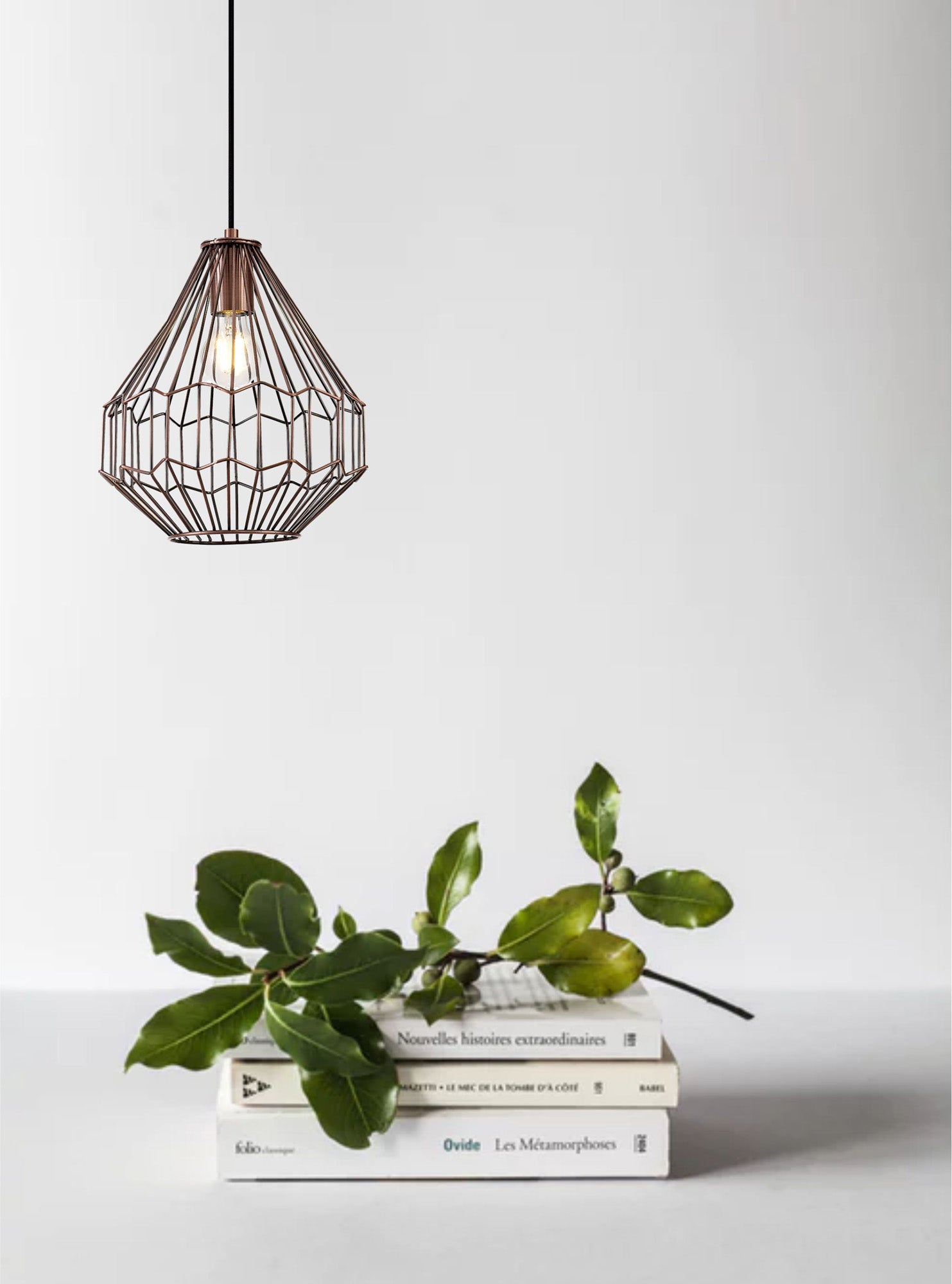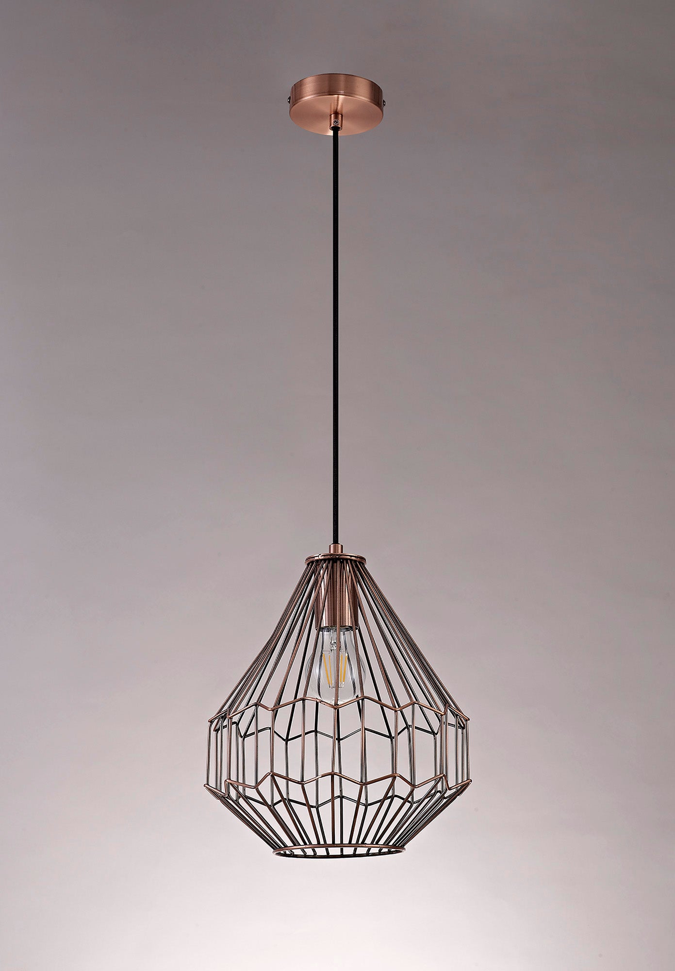 With geometric shapes and form, the Valentina range includes two pendants finished in a stunning Antique Copper/Black, ideal for use within a traditional atmosphere or even to bring a touch of contemporary ambience to a modern space. The wired format of the metalwork allows an open uninhibited dispersal of light from the E27 lampholder. Both lights take a maximum 60W ensuring an extensive amount of illumination is achievable.