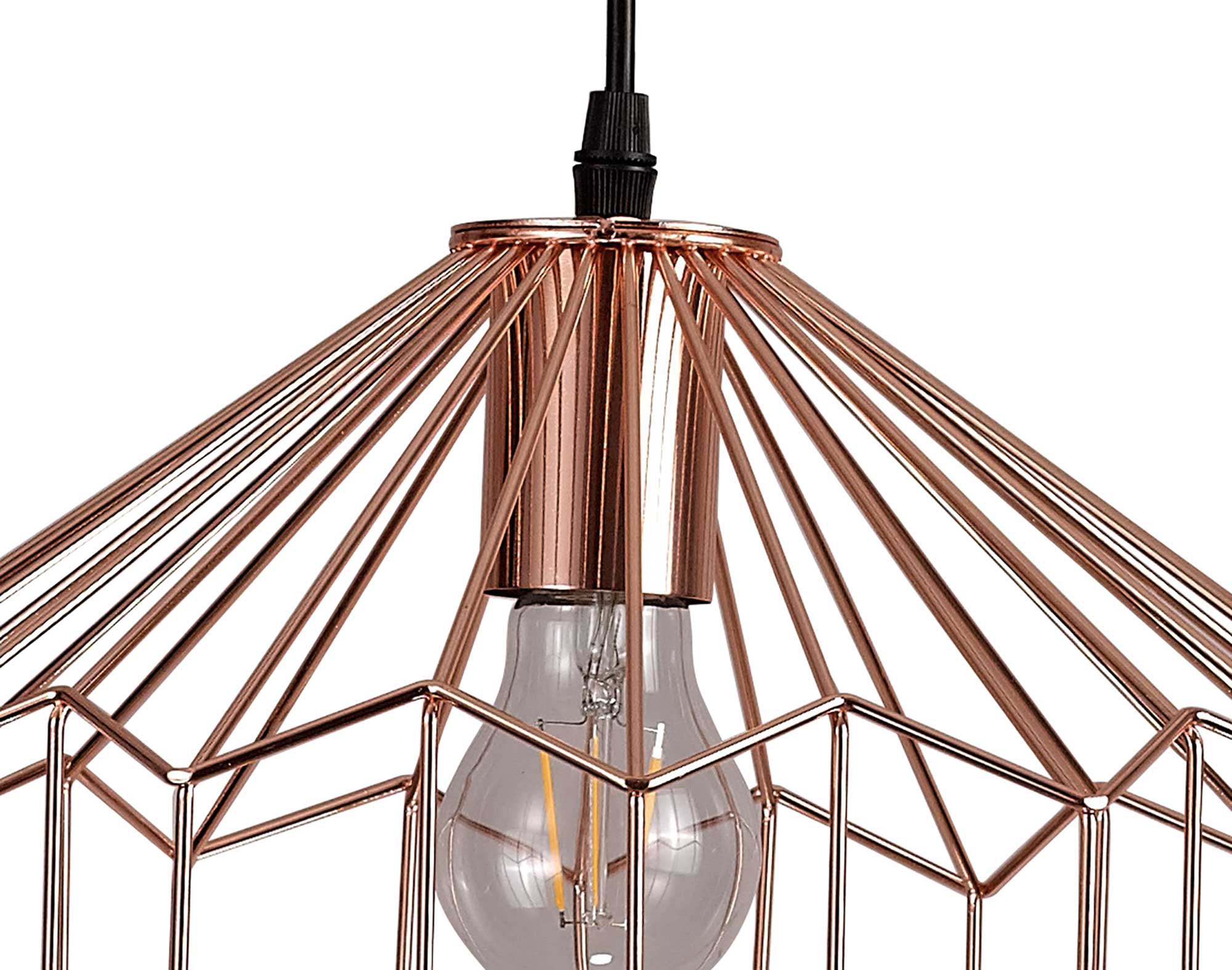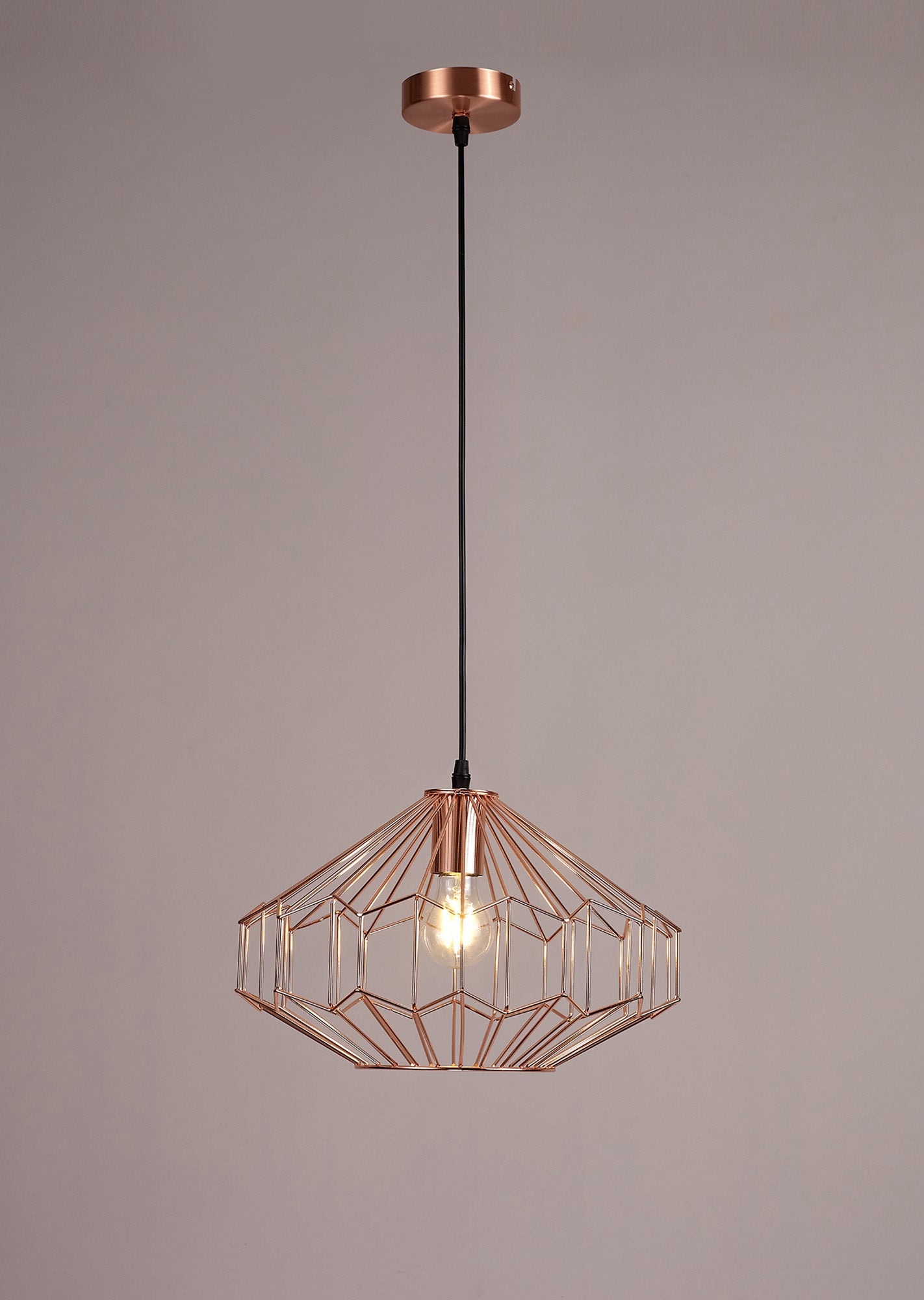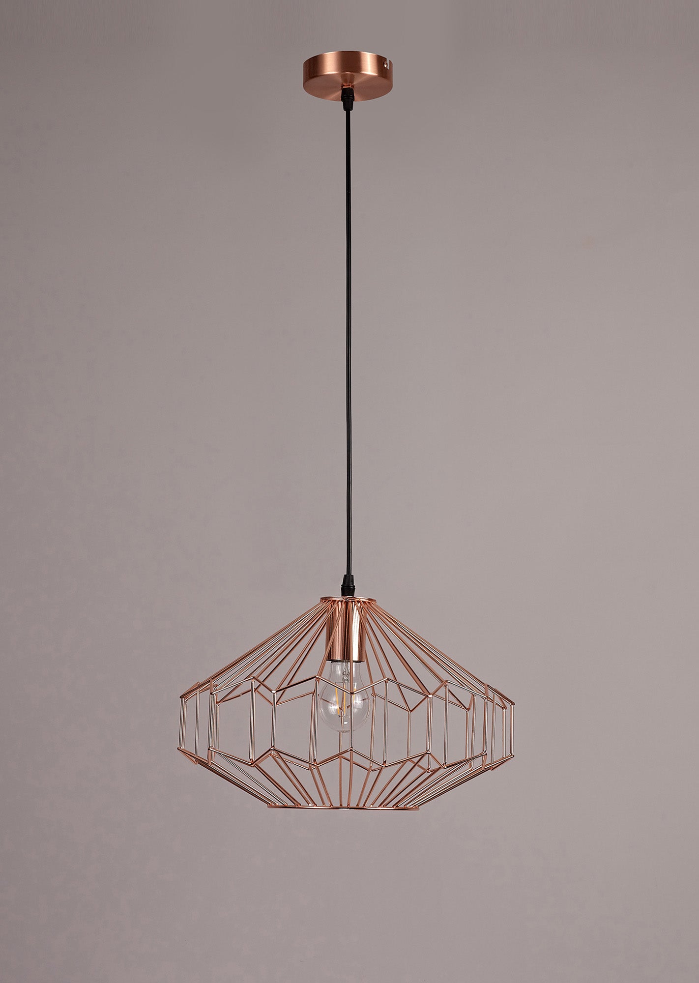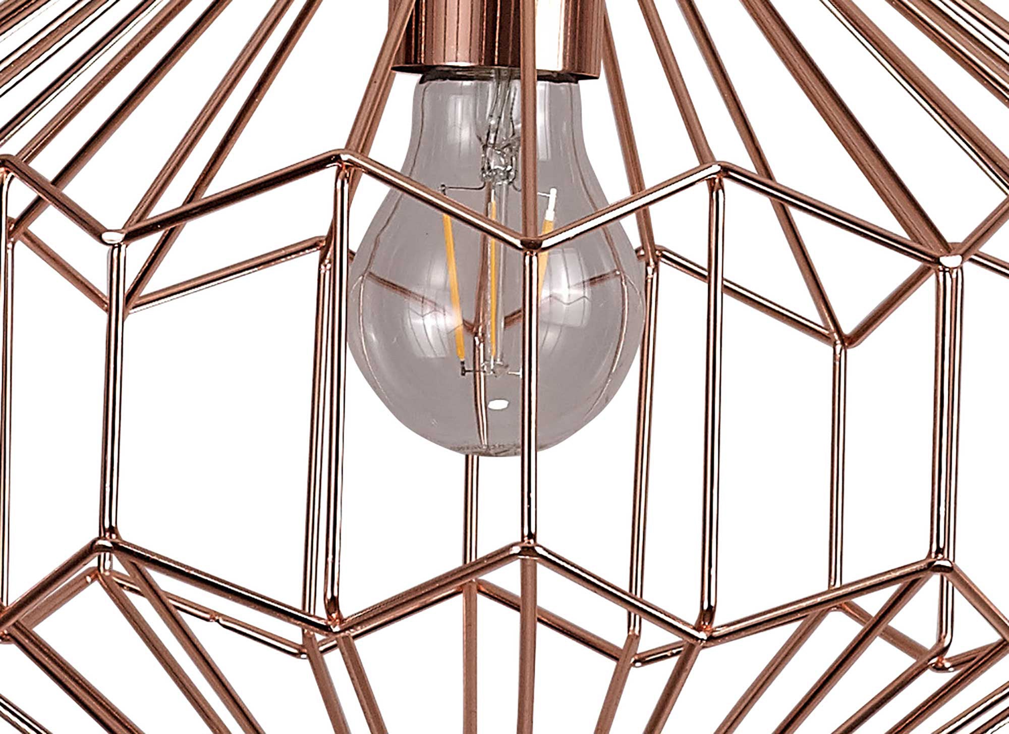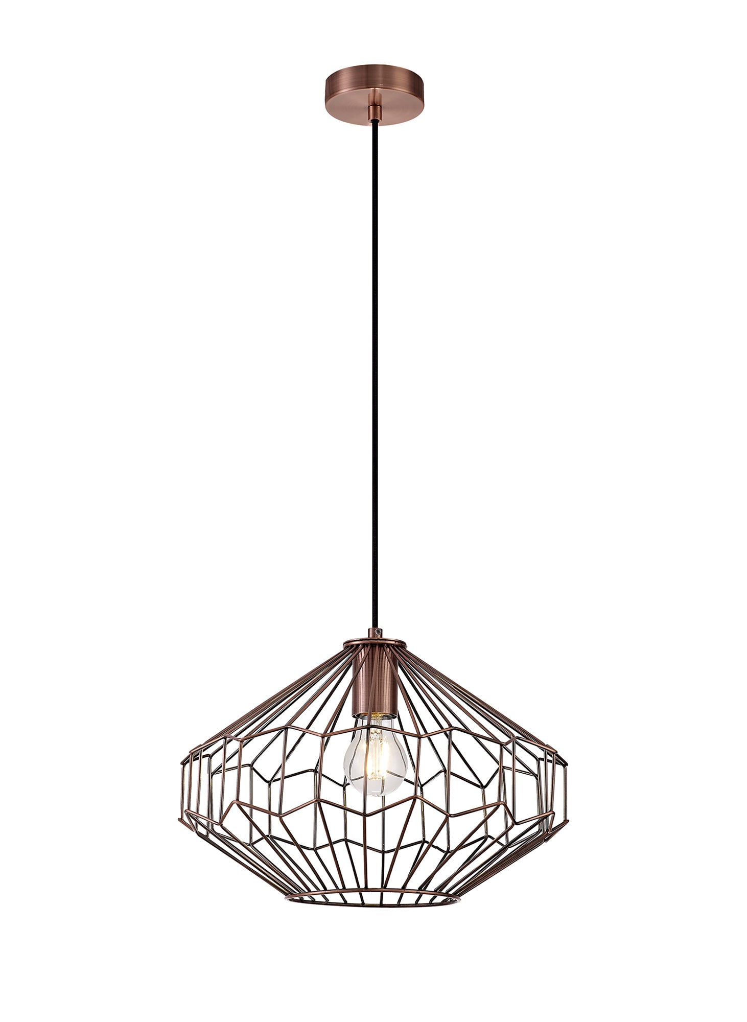 With geometric shapes and form, the Valentina range includes two pendants finished in a stunning Antique Copper/Black, ideal for use within a traditional atmosphere or even to bring a touch of contemporary ambience to a modern space. The wired format of the metalwork allows an open uninhibited dispersal of light from the E27 lampholder. Both lights take a maximum 60W ensuring an extensive amount of illumination is achievable.