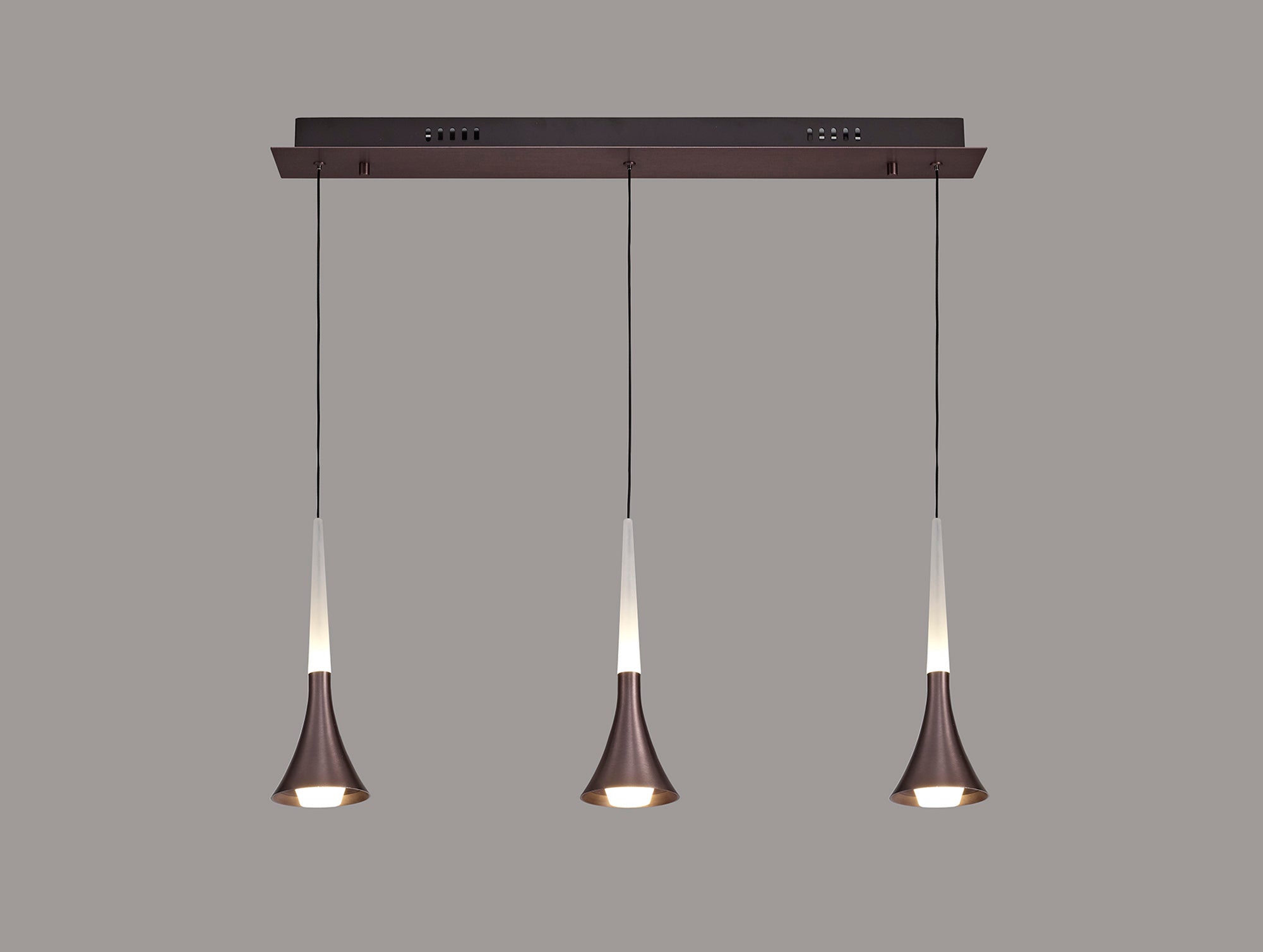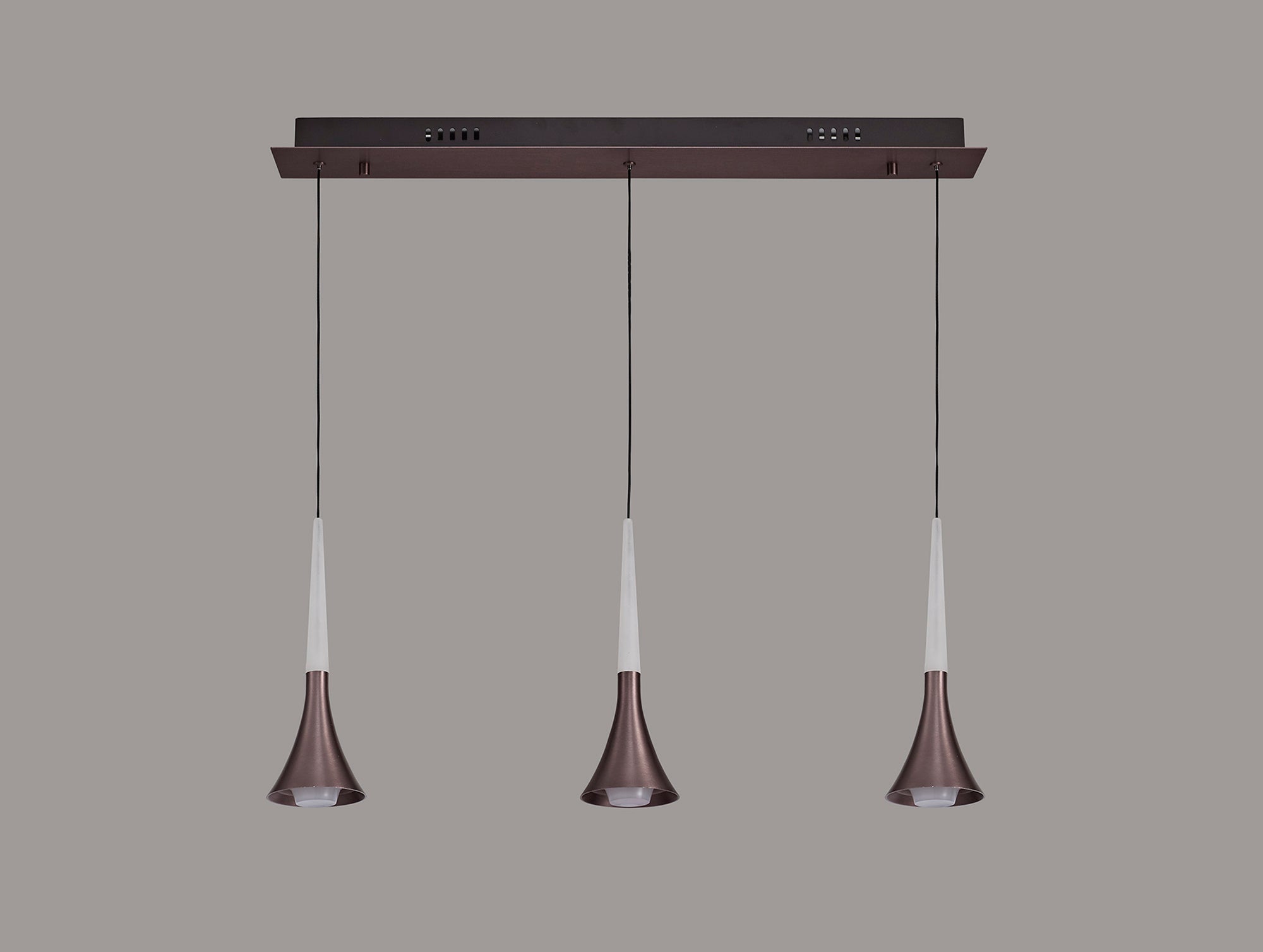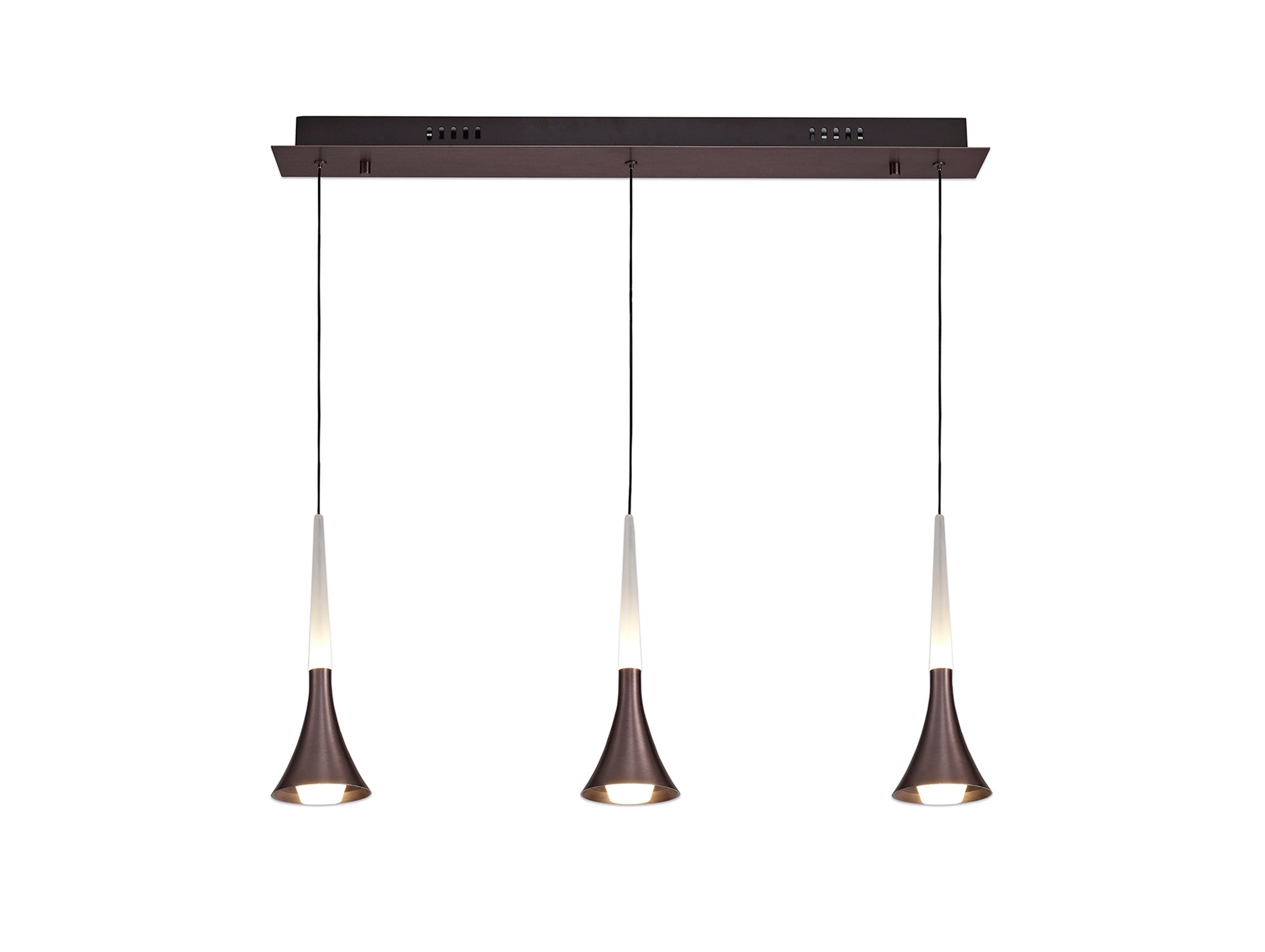 Lucile 3 Light Linear Pendant, 3 x 5W LED, 3000K, 431lm, Satin Brown, 3yrs Warranty