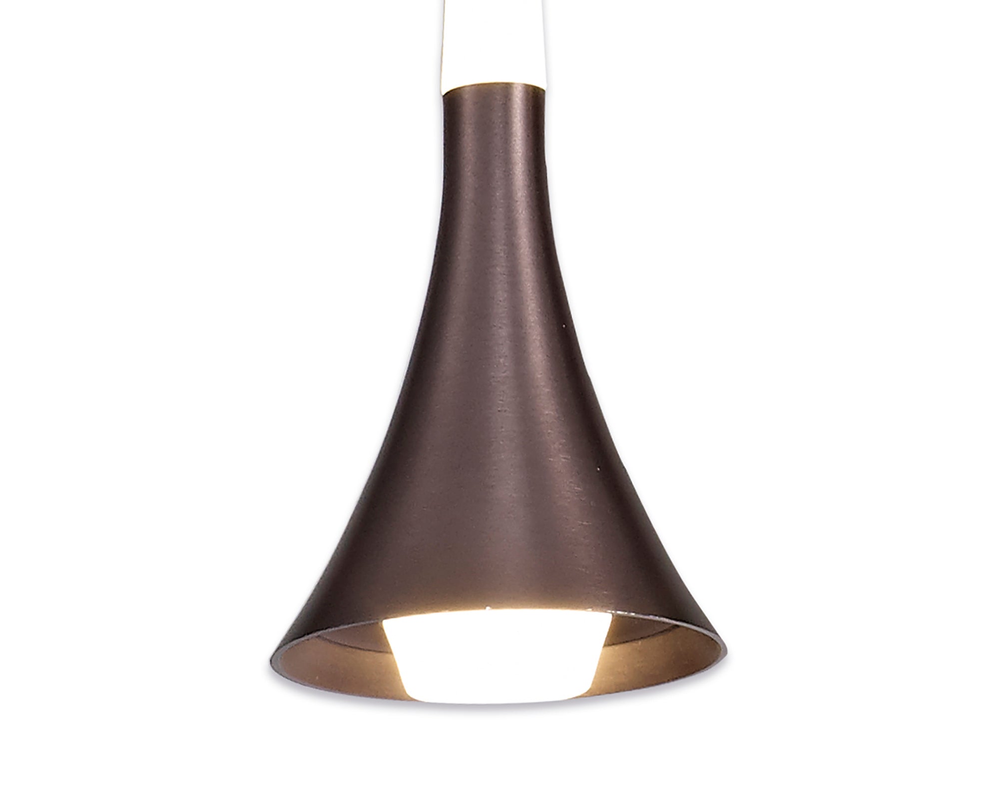 A collection of sleek pendants, Lucile's modern flared cone shape creates a funnel effect enhancing the light emitted from the integral 3000K LEDs. The satin brown colour finish of the metal framework provides a more adaptable option for neutral room settings where a warmer feature is required, without compromising the benefits of modern LED technology. Available in a single pendant, round 3 light pendant or linear 3 light pendant, this range is appropriate for illuminating a smaller room or enhancing a dining area.