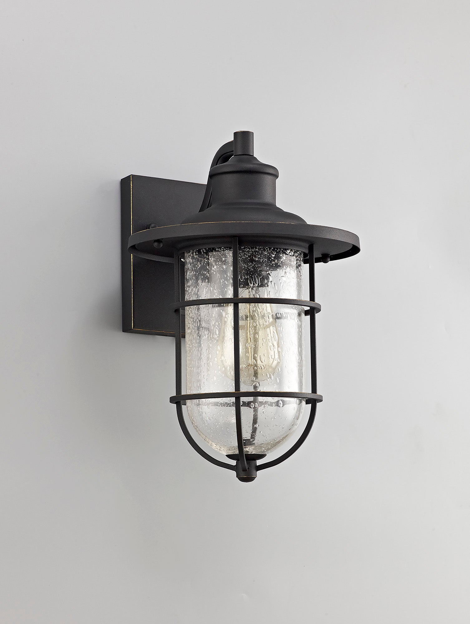 Nautica Wall Lamp, 1 x E27, Black/Gold With Seeded Clear Glass, IP54, 2yrs Warranty
