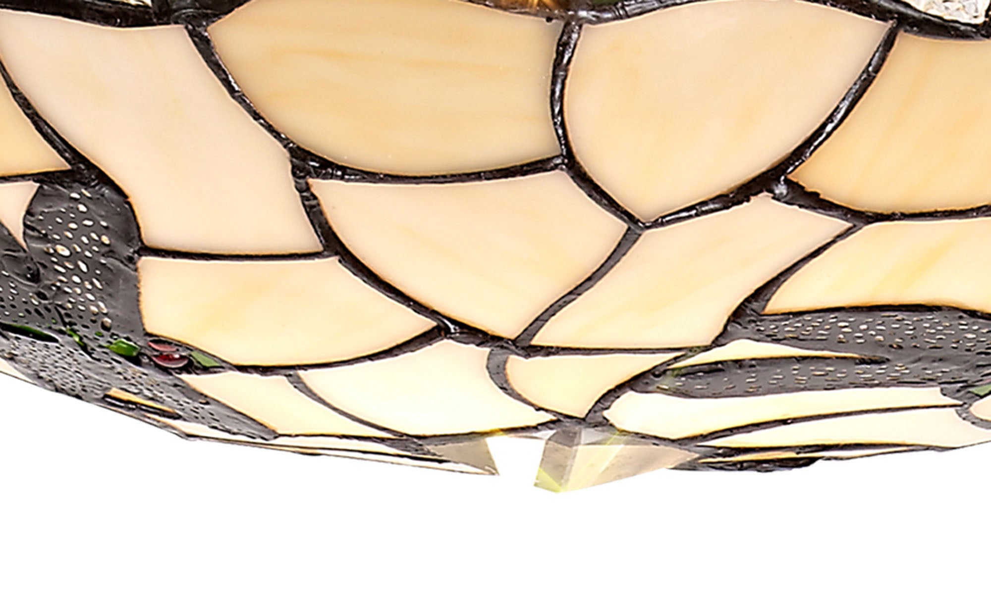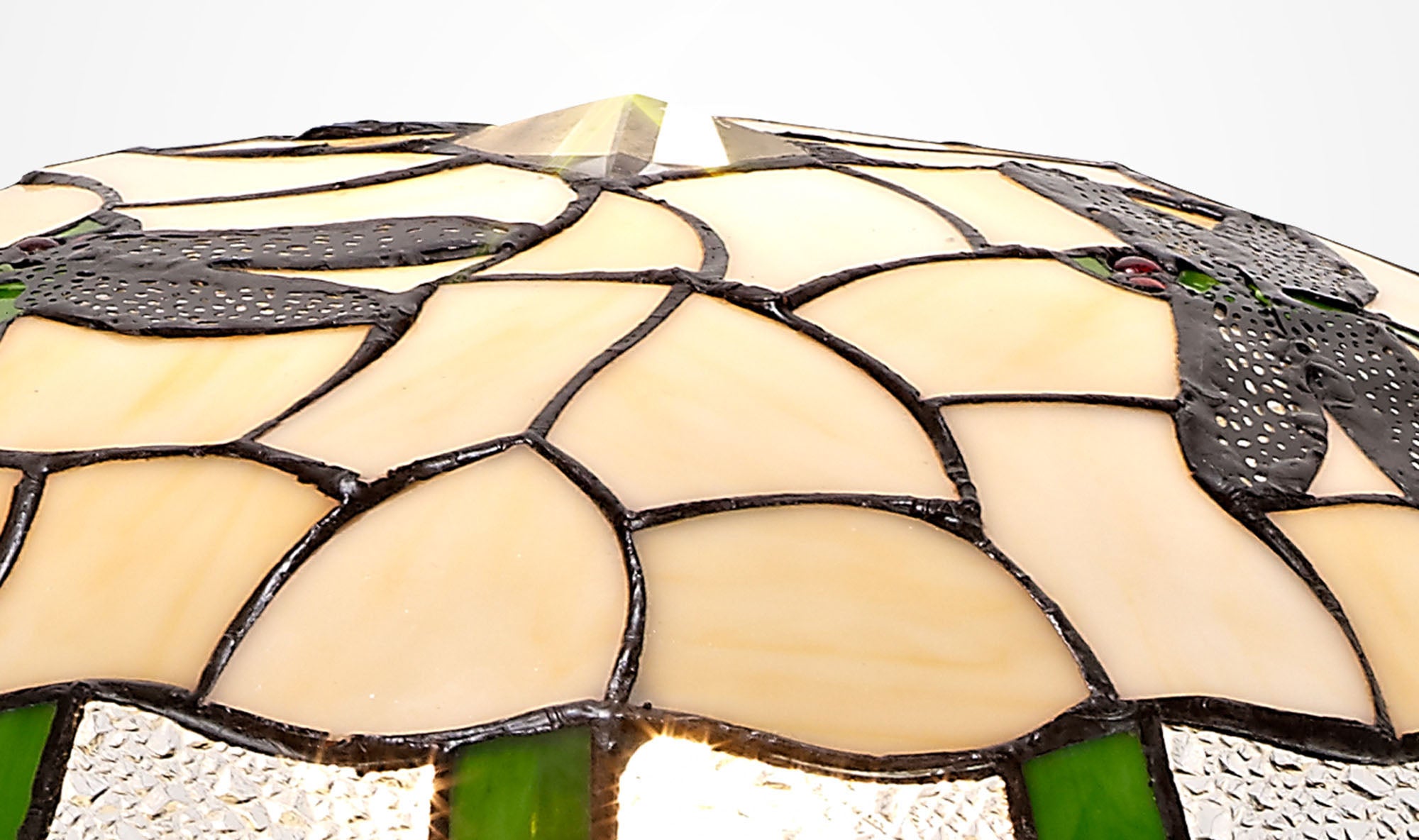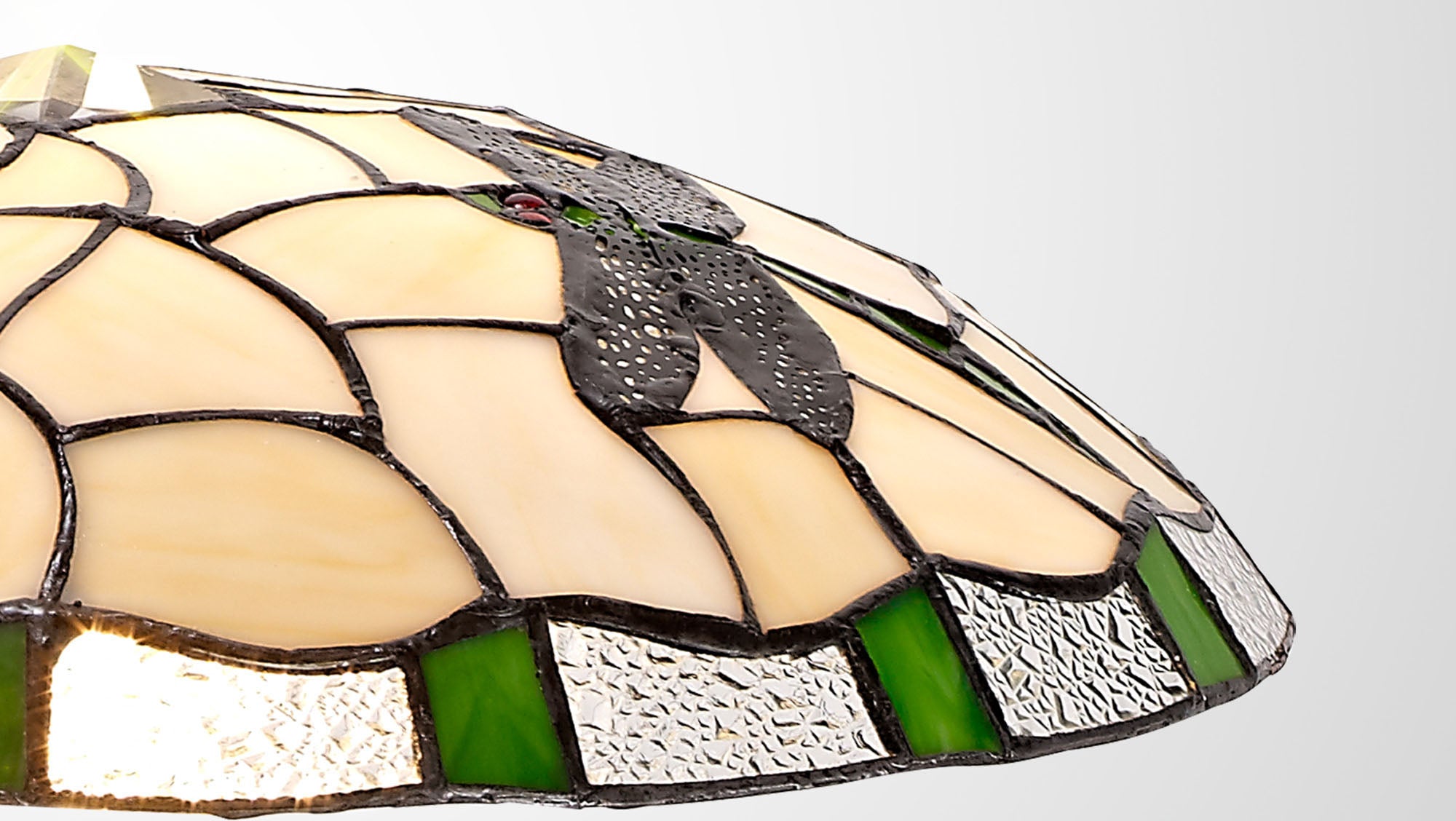 A classically traditional Tiffany shade collection, Adena pairs primary colours with a more neutral crealm to create a ovolanced combination of beautiful Tiffany glass. The famialiyar dragonfly pattern is slightly modernised with the clear crystal pieces in place of the more expected glass drops adding a touch of sparkle for a new age. Designed for use with an uplighter kit, Adena is a perfect representation of all Tiffany glass has to offer.