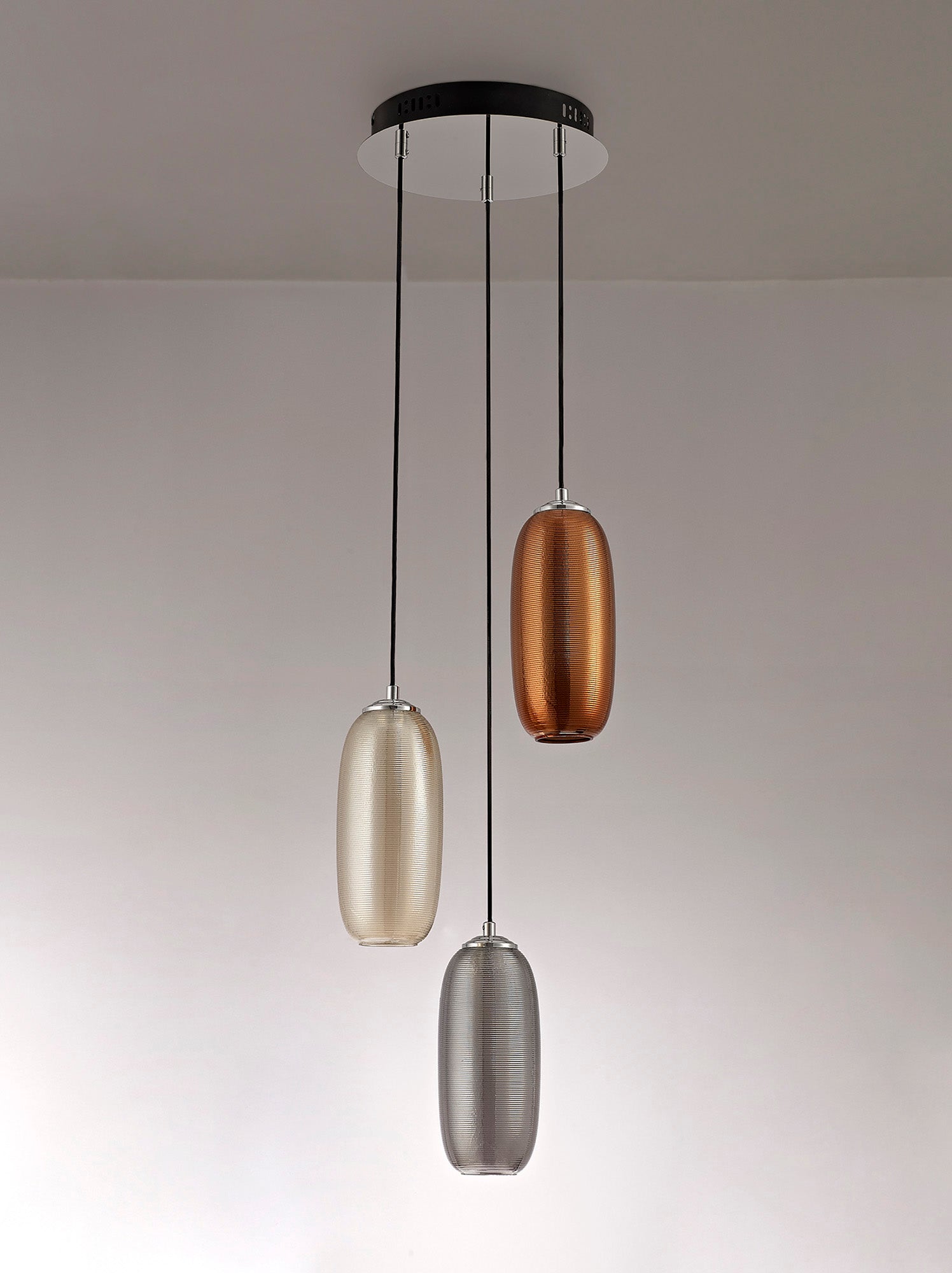 Barton Multiple Pendant, 3 x 8W LED, 4000K, 2160lm, Smoked, Copper & Champagne/Black, 3yrs Warranty