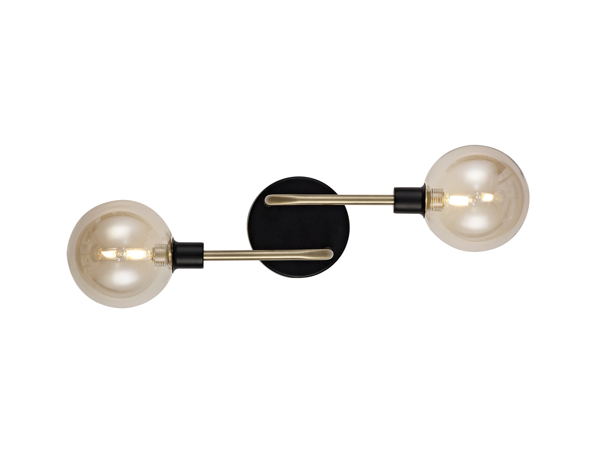 Denon Wall Lamp, 2 Light G9, Matt Black/Antique Brass/Cognac Glass