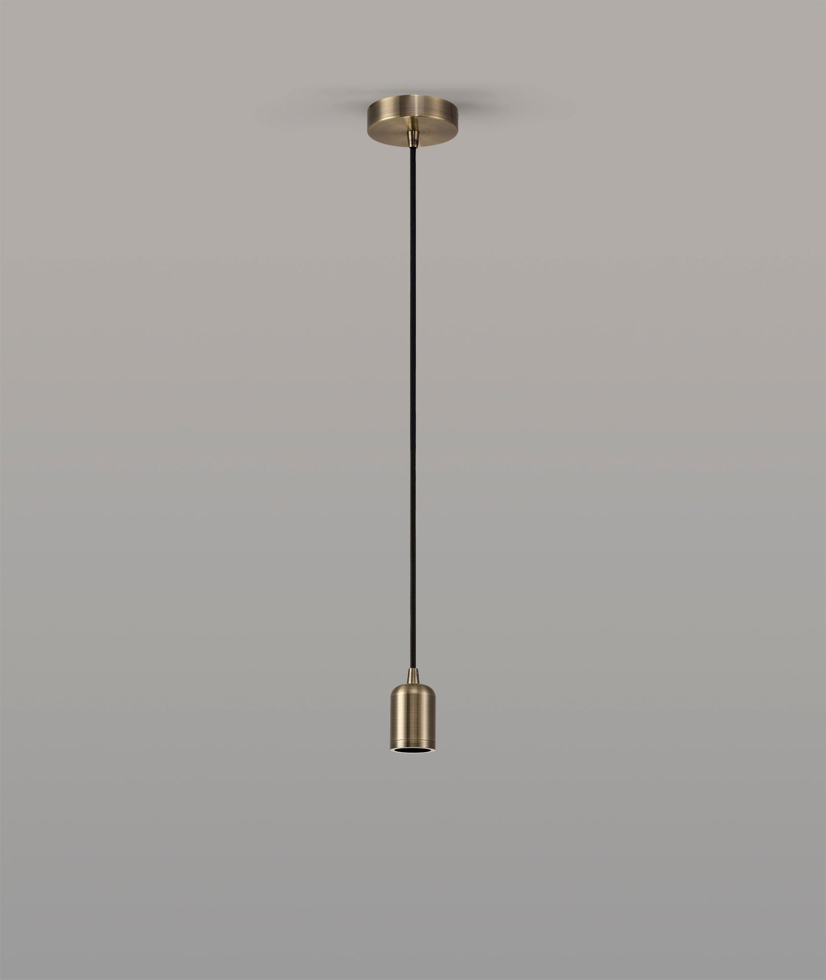 Arpeta 1m Suspension Kit 1 Light Antique Brass/Black Braided Cable, E27 Max 60W, c/w Ceiling Bracket