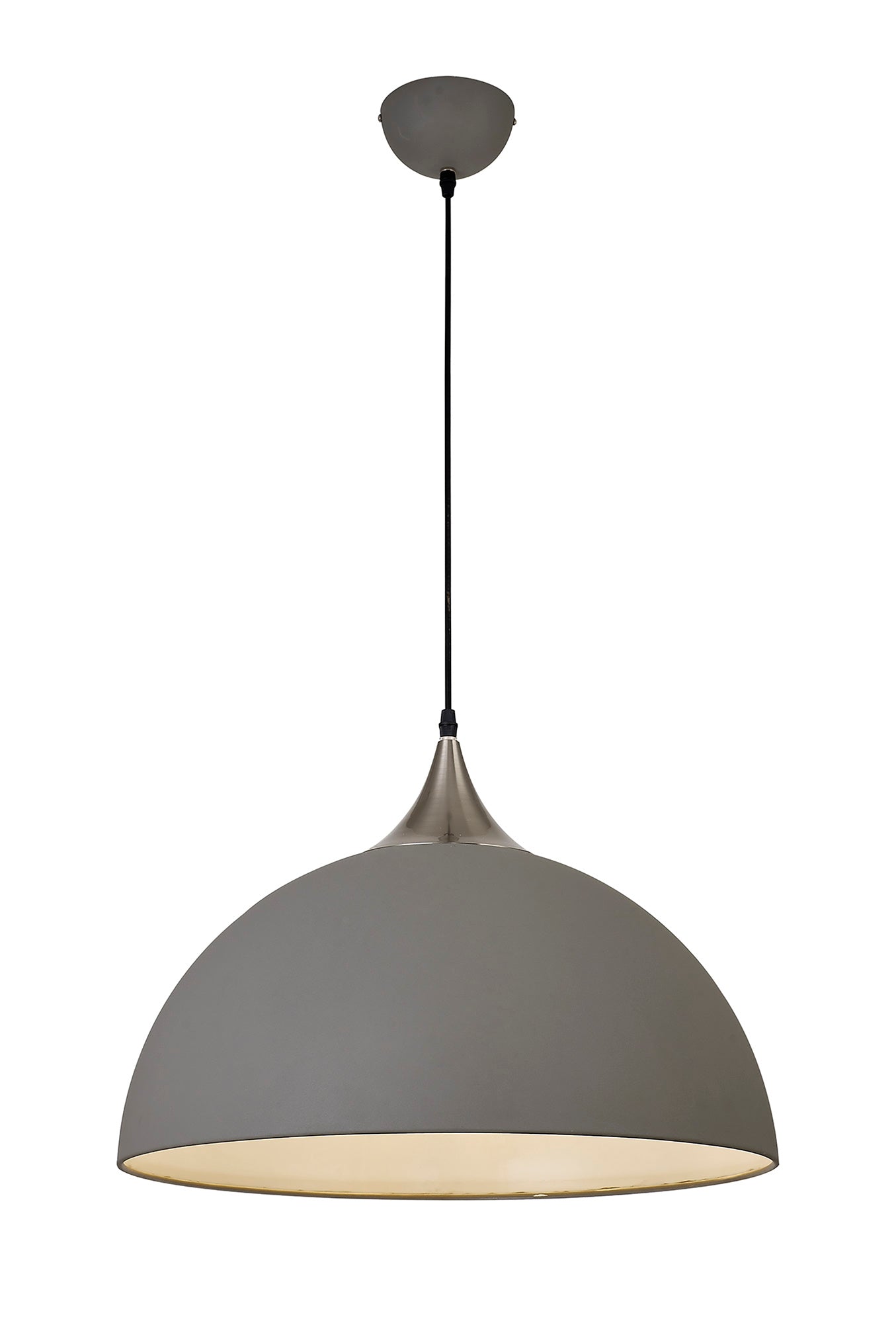 A uniform bowl shape forming the Atanja collection, provides ample shade for the downward directionality of light from the E27 lampholder which it houses. Their dome ceiling cups reflect the form of the 38cm and 50cm metal shades shape allowing a cohesive design. The sand effect of the neutral colour finishes available partner well with the small satin nickel components ensuring the light blends with the d_cor of its chosen setting.