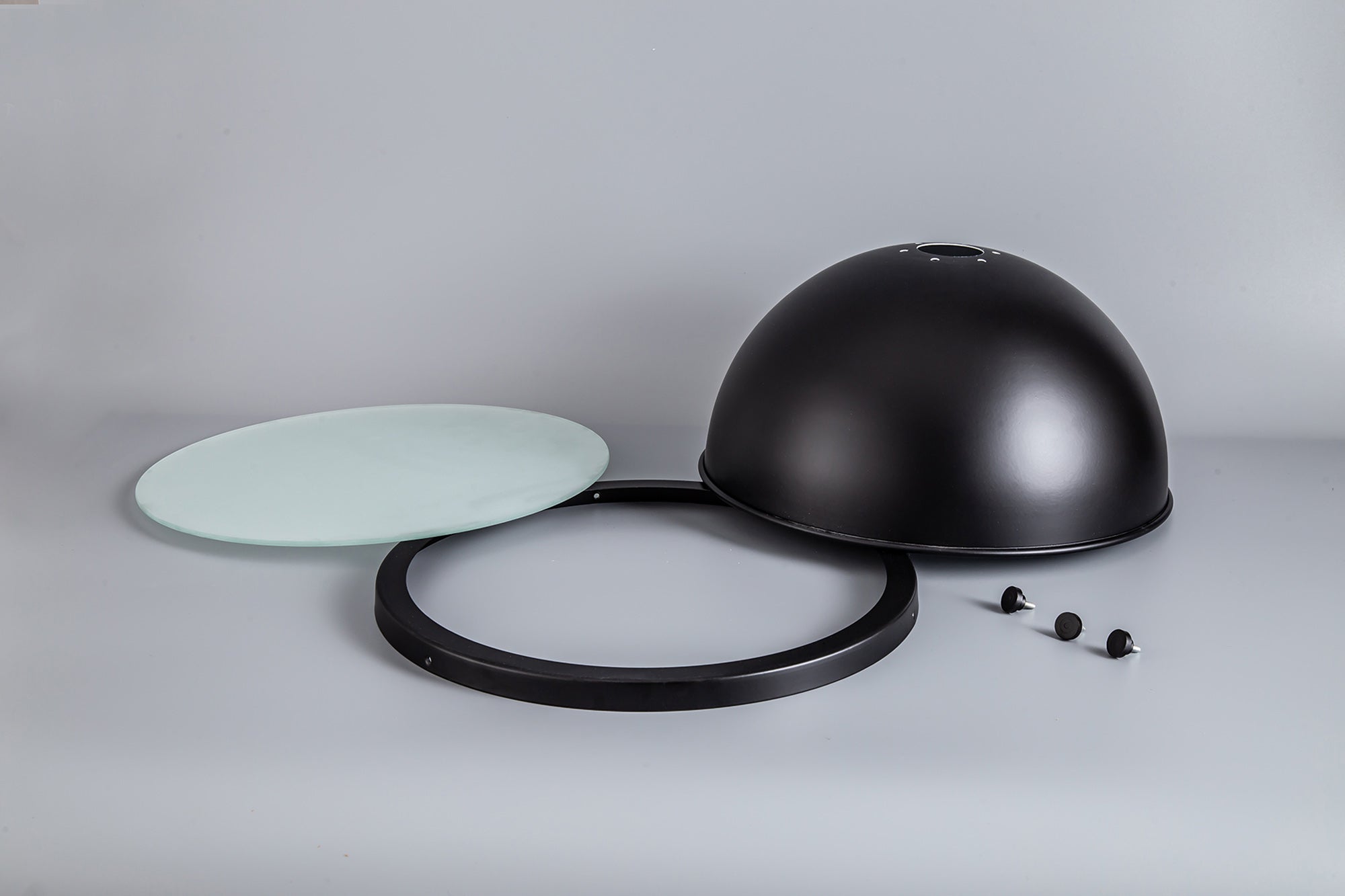 Docker Round 31cm Matt Black Metal Shade With Frosted Glass Diffuser And Trim LO183833