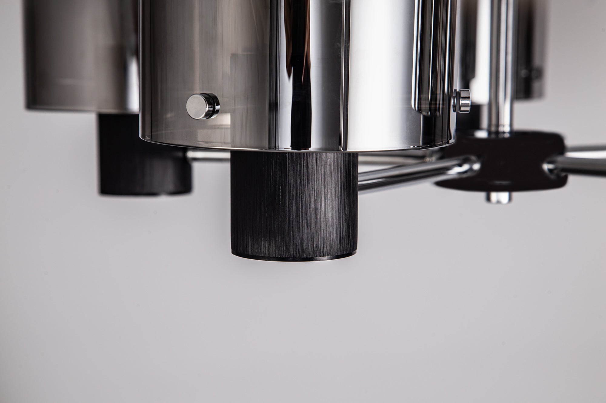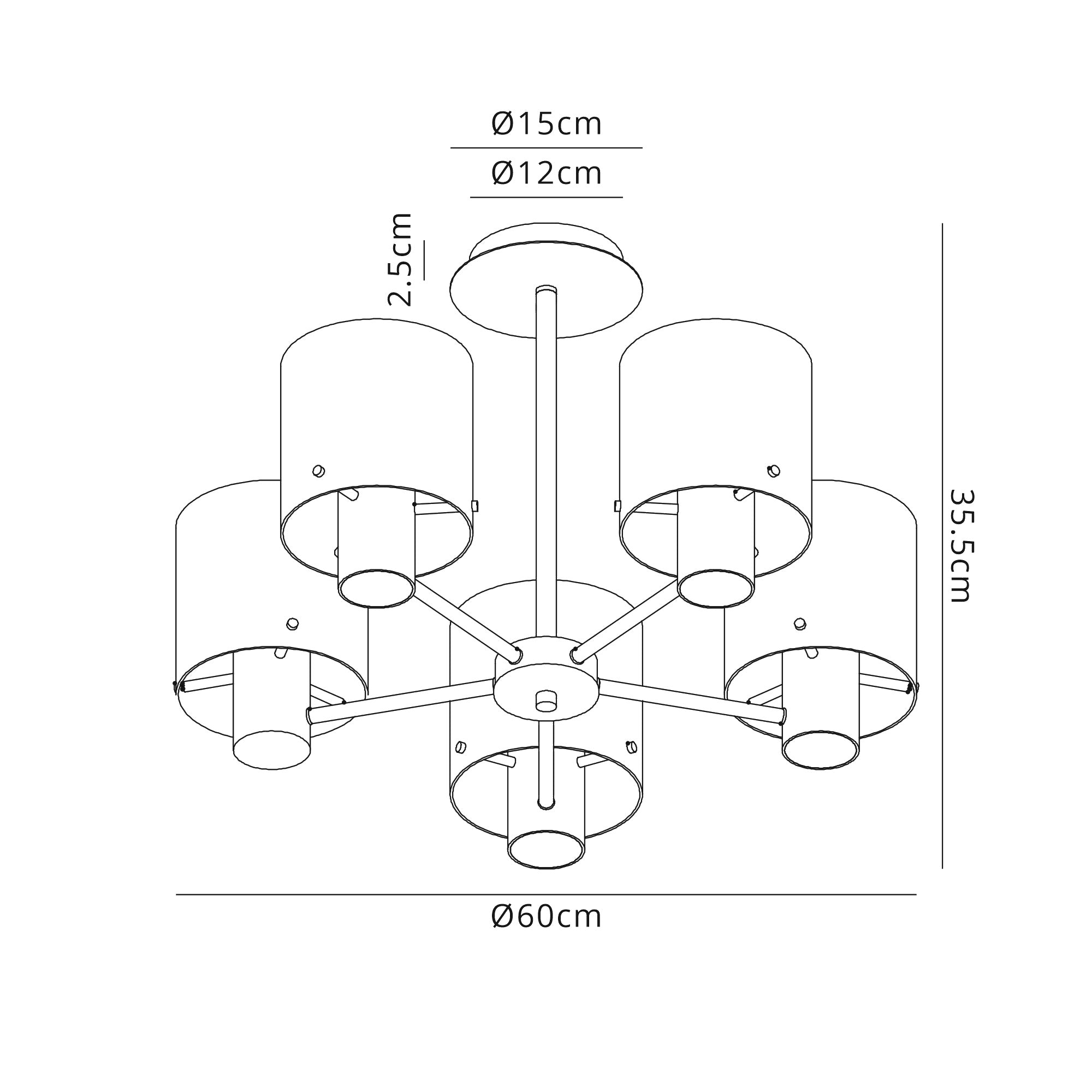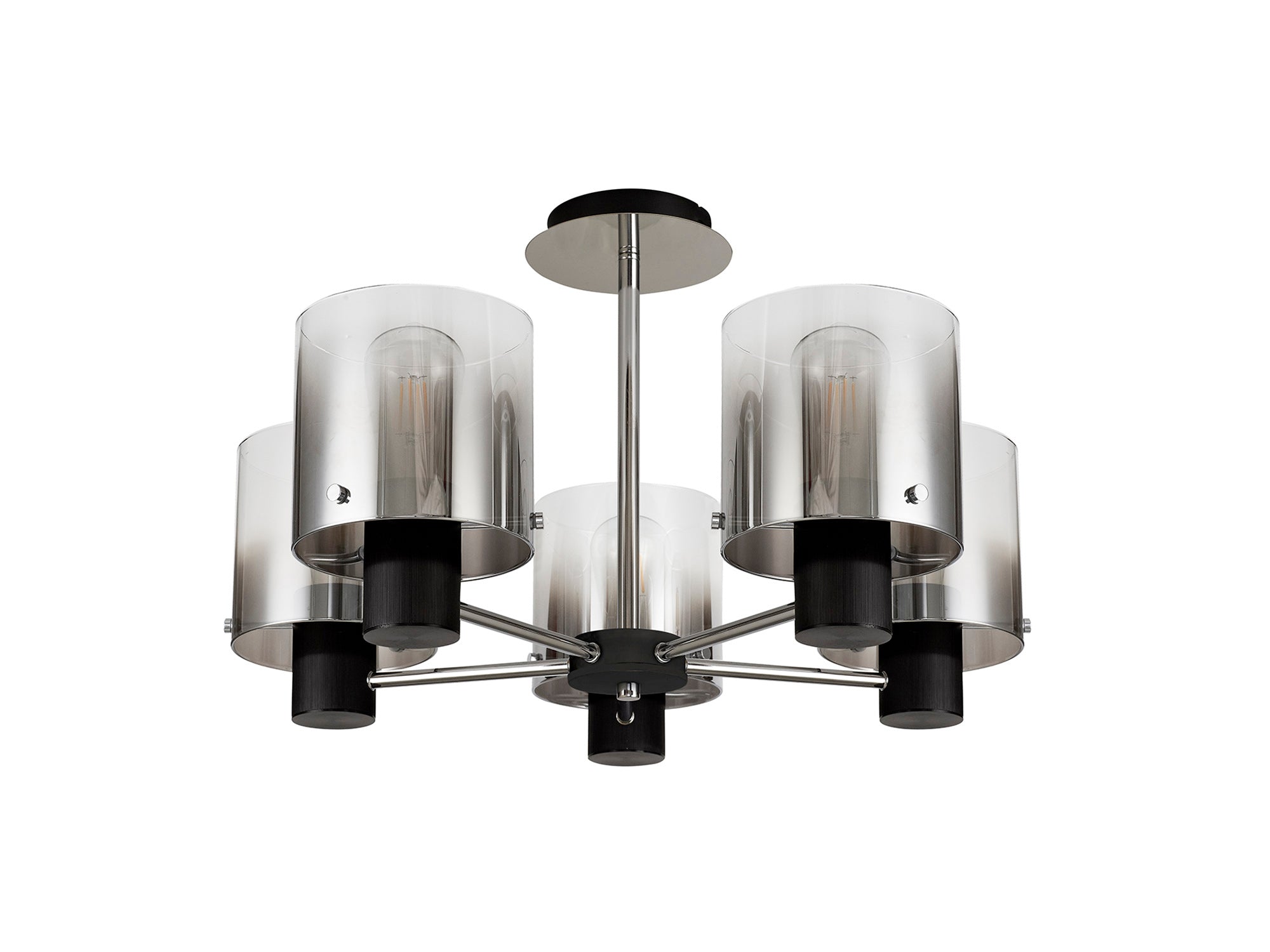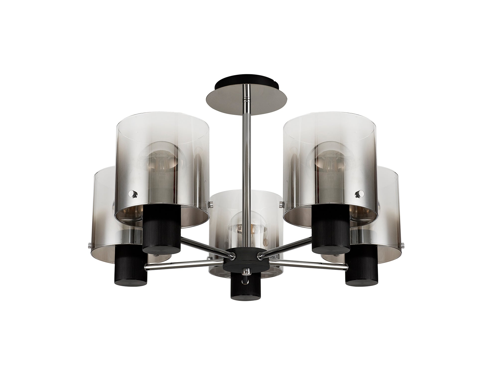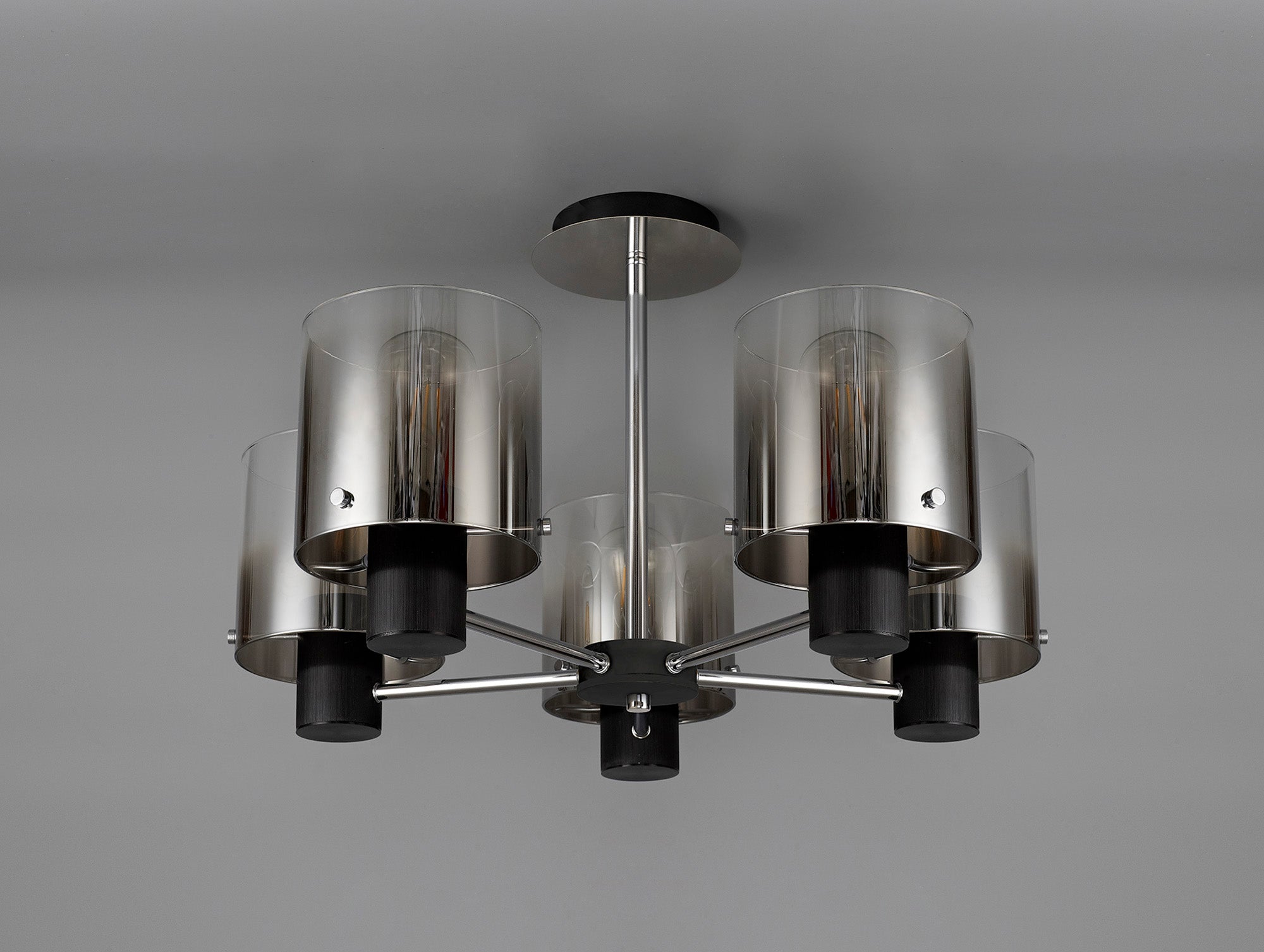 Lois 5 Light Black & Chrome Smoked Glass Semi flush Ceiling Light LO184023 This sophisticated fixture is designed to make a modern statement in any space, featuring quality metal construction and five black and chrome smoked glass shades.