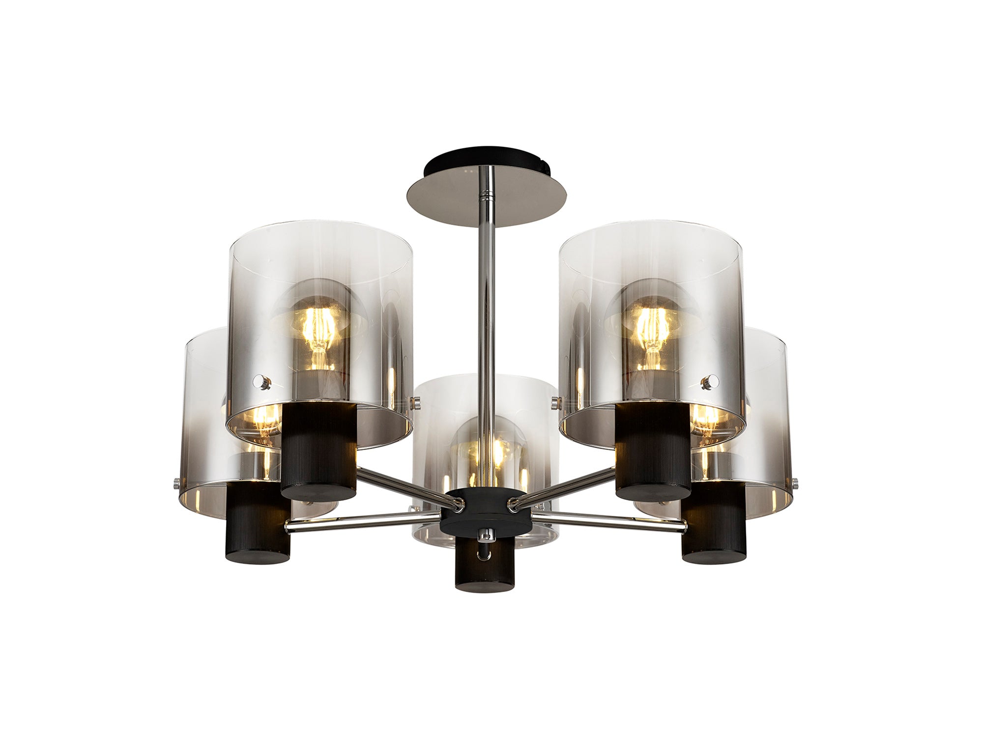 Lois 5 Light Black & Chrome Smoked Glass Semi flush Ceiling Light LO184023