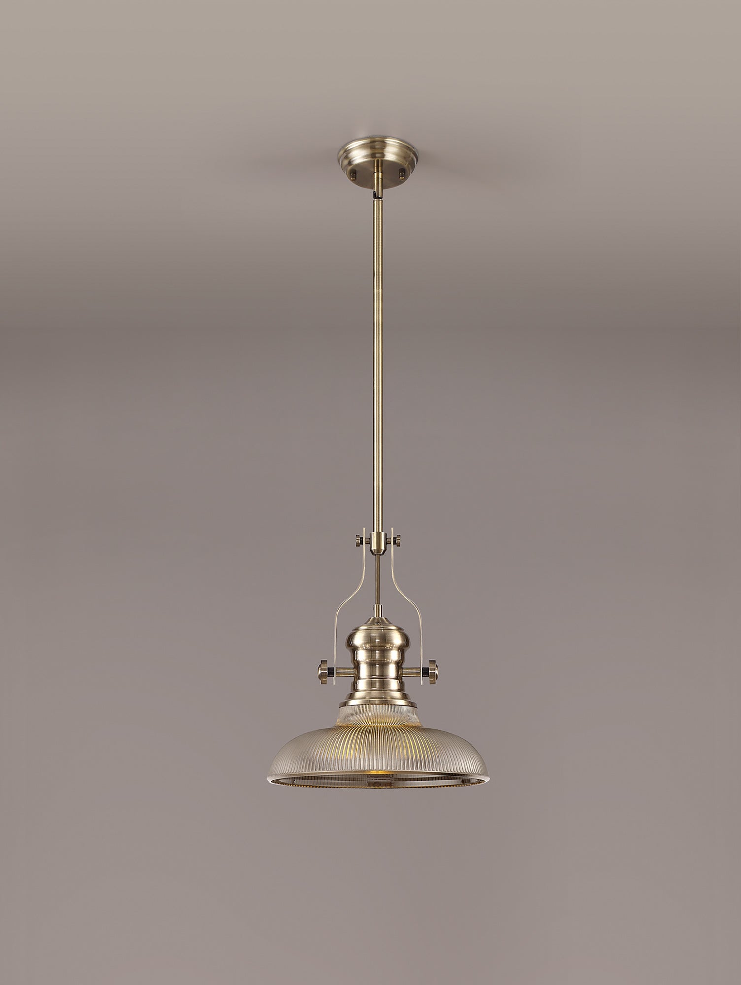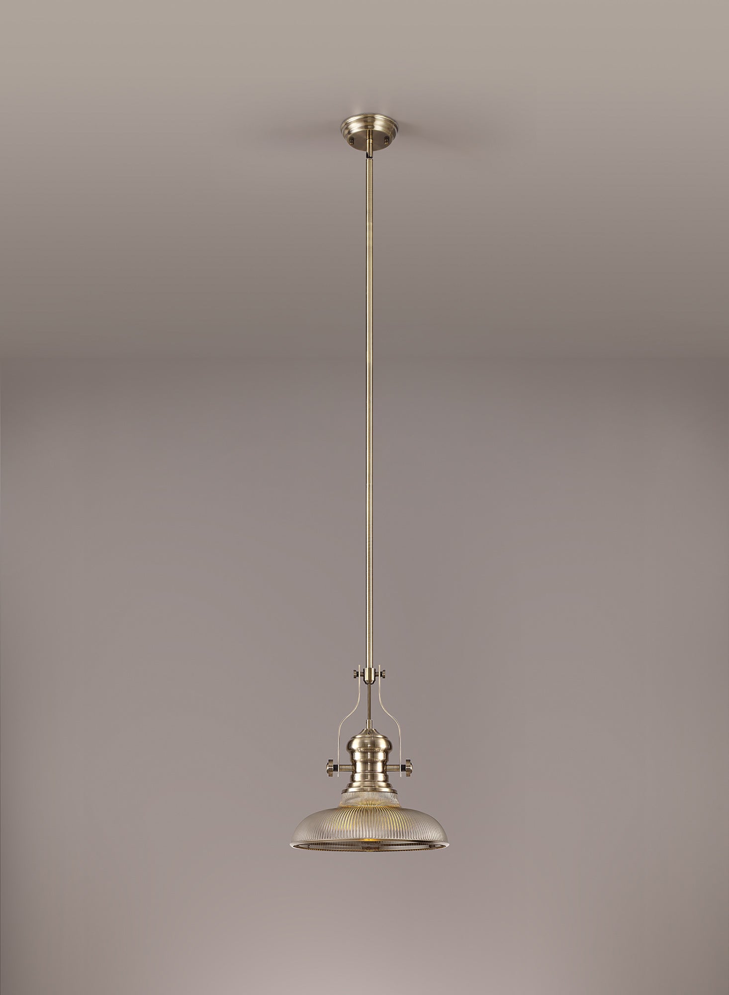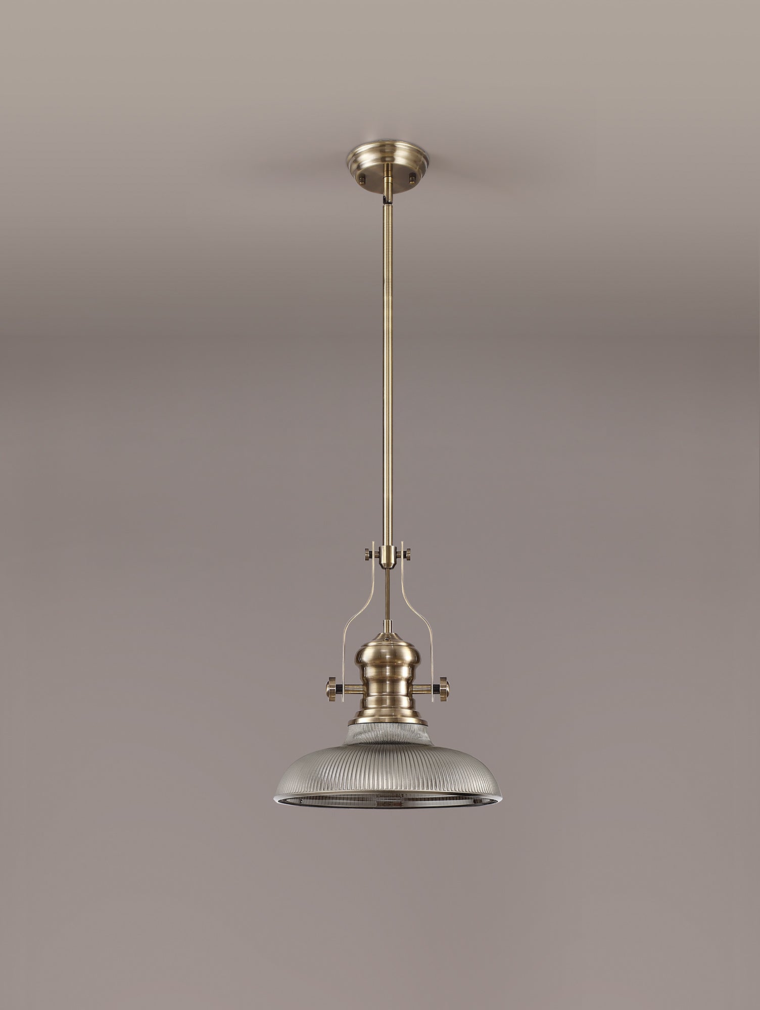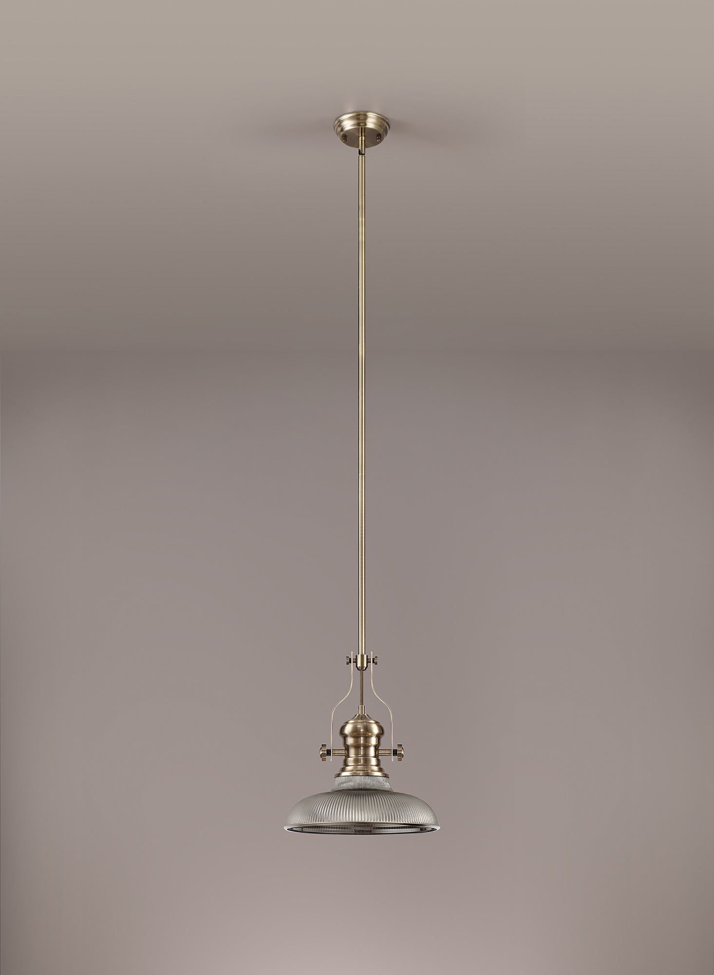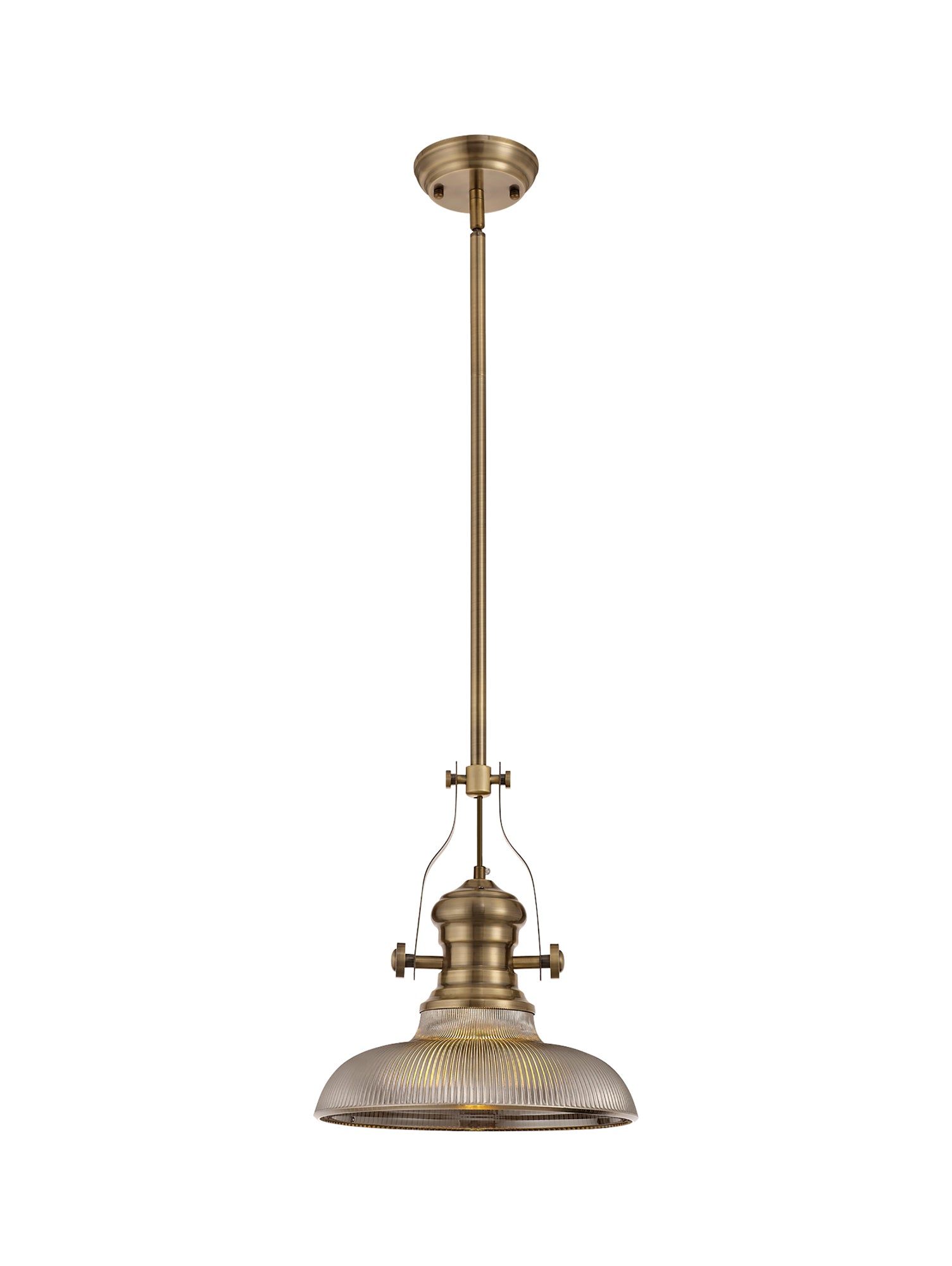 Docker 1 Light Pendant E27 With 30cm Round Glass Shade, Antique Brass/Smoked