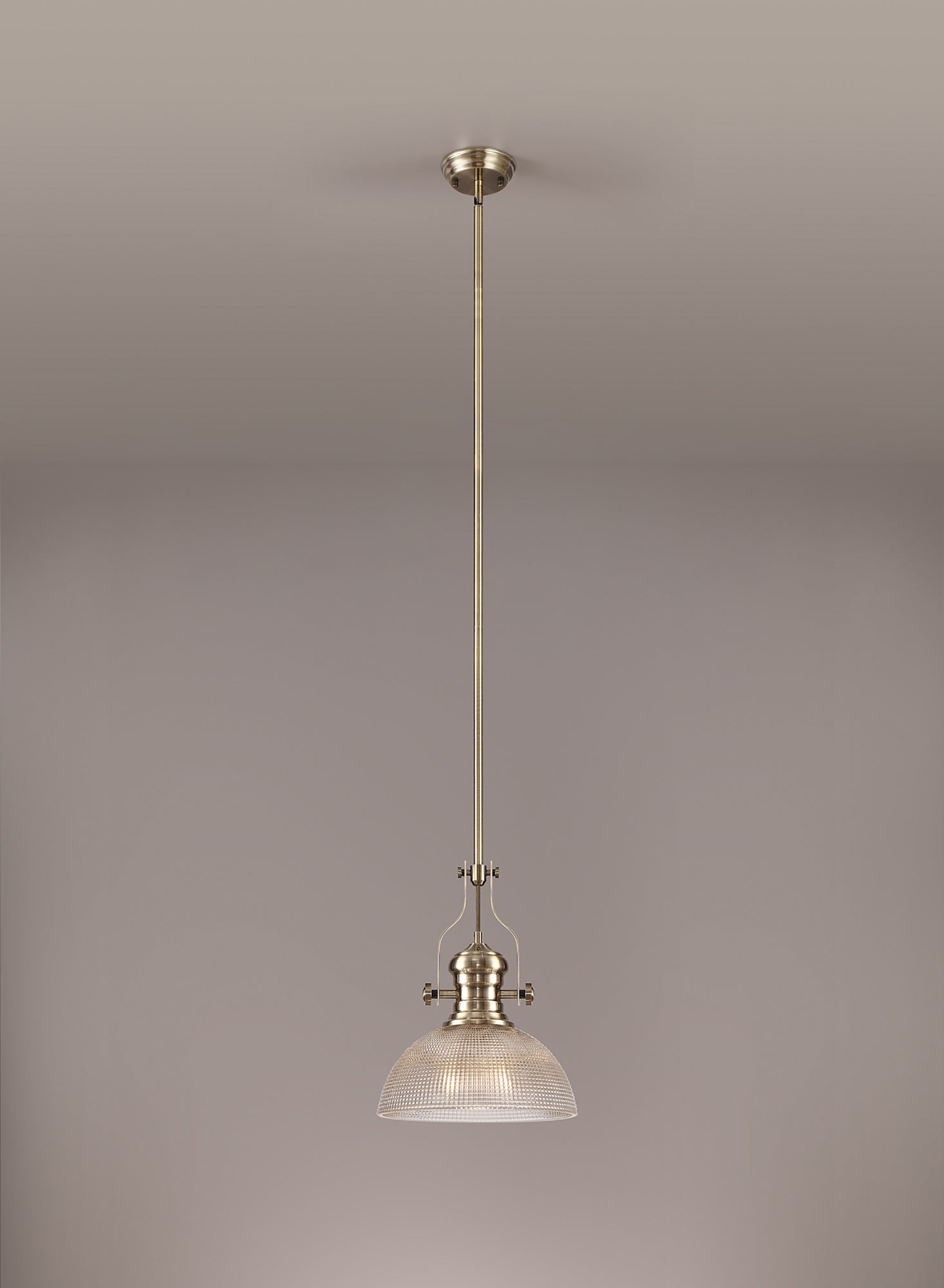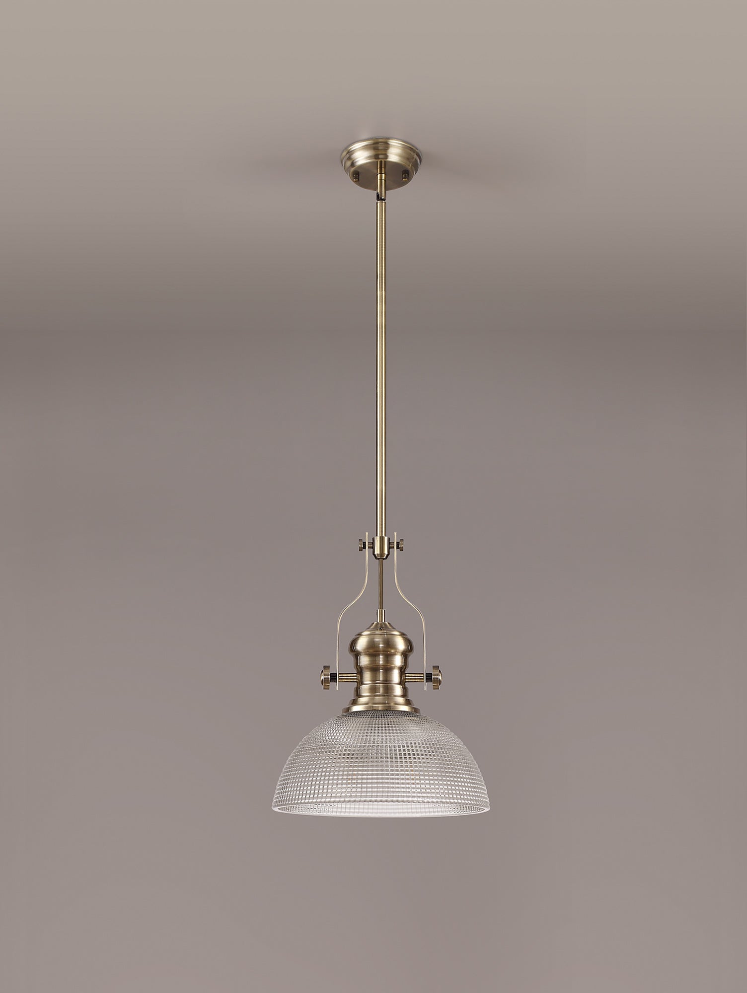 Docker 1 Light Pendant E27 With 30cm Prismatic Glass Shade, Antique Brass/Clear