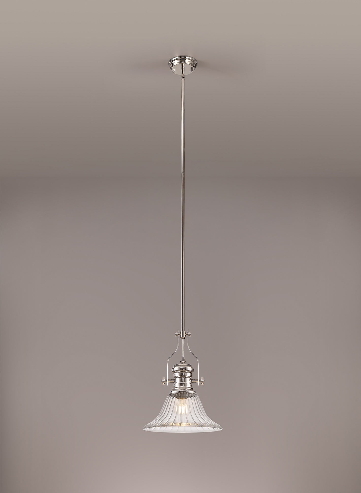 Docker 1 Light Pendant E27 With 30cm Bell Glass Shade, Polished Nickel/Clear