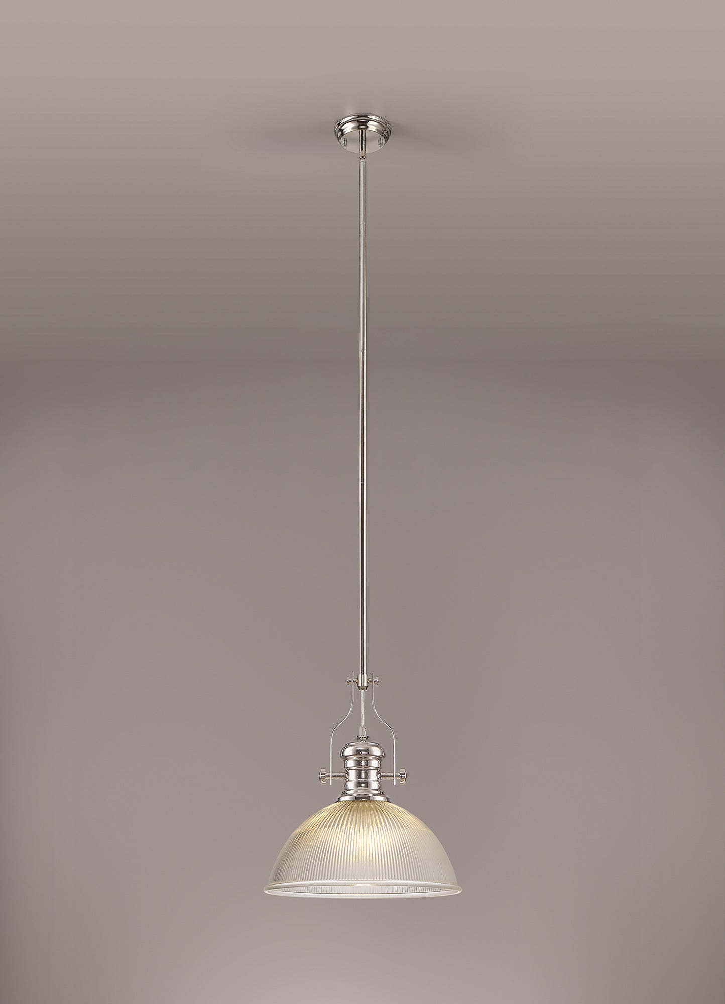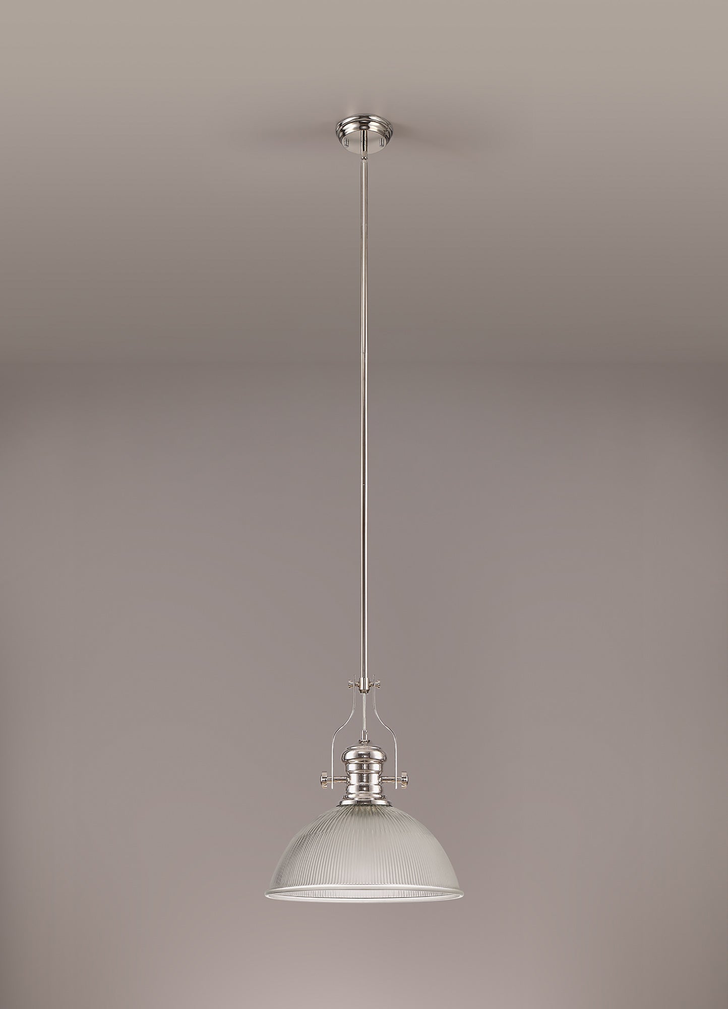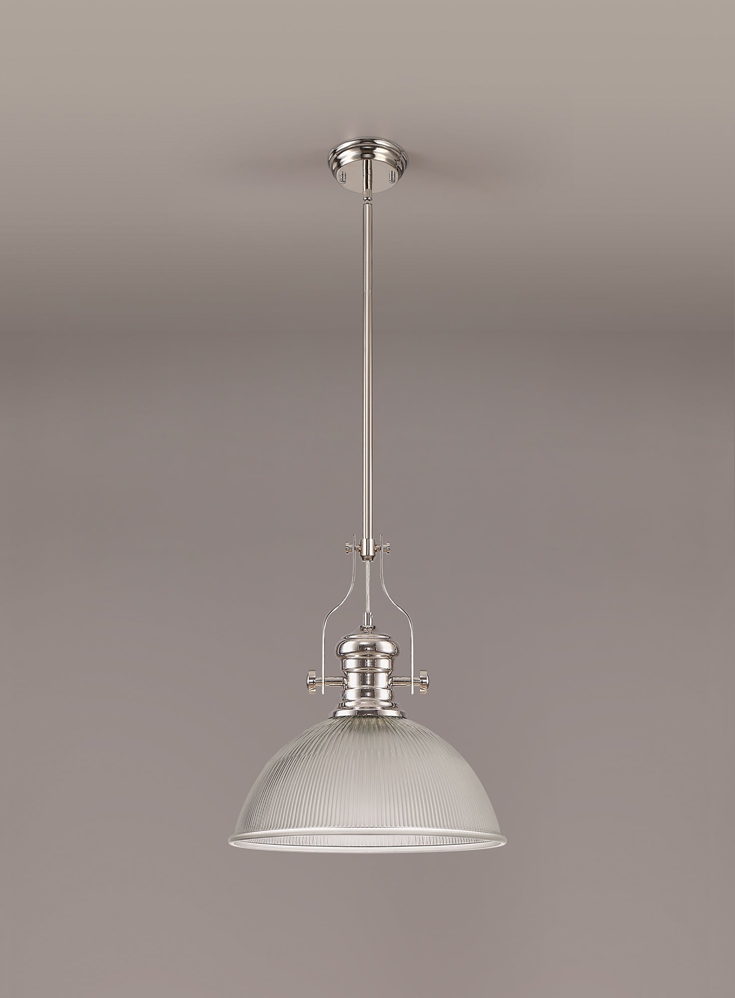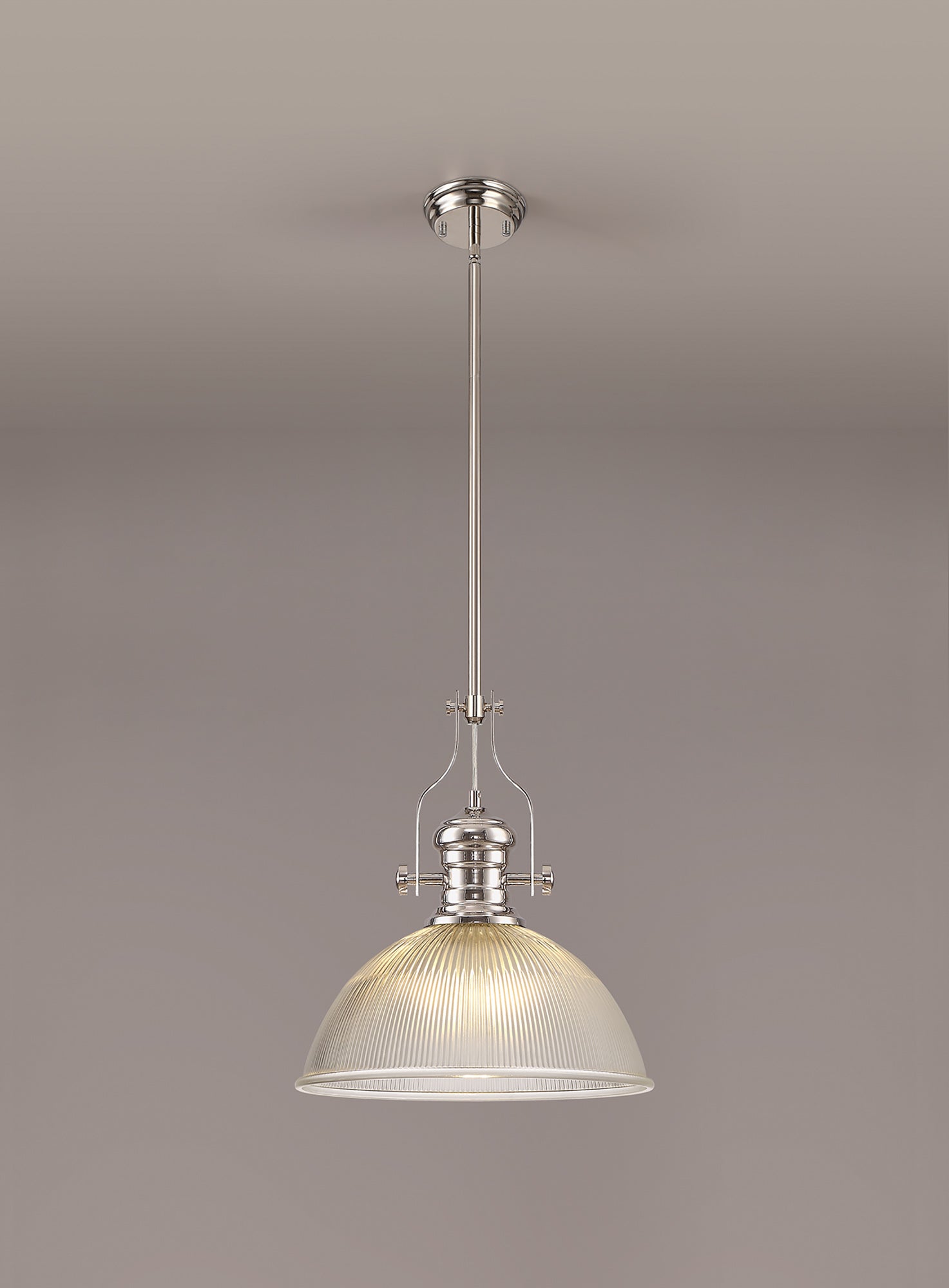 Docker 1 Light Pendant E27 With 38cm Dome Glass Shade, Polished Nickel/Clear