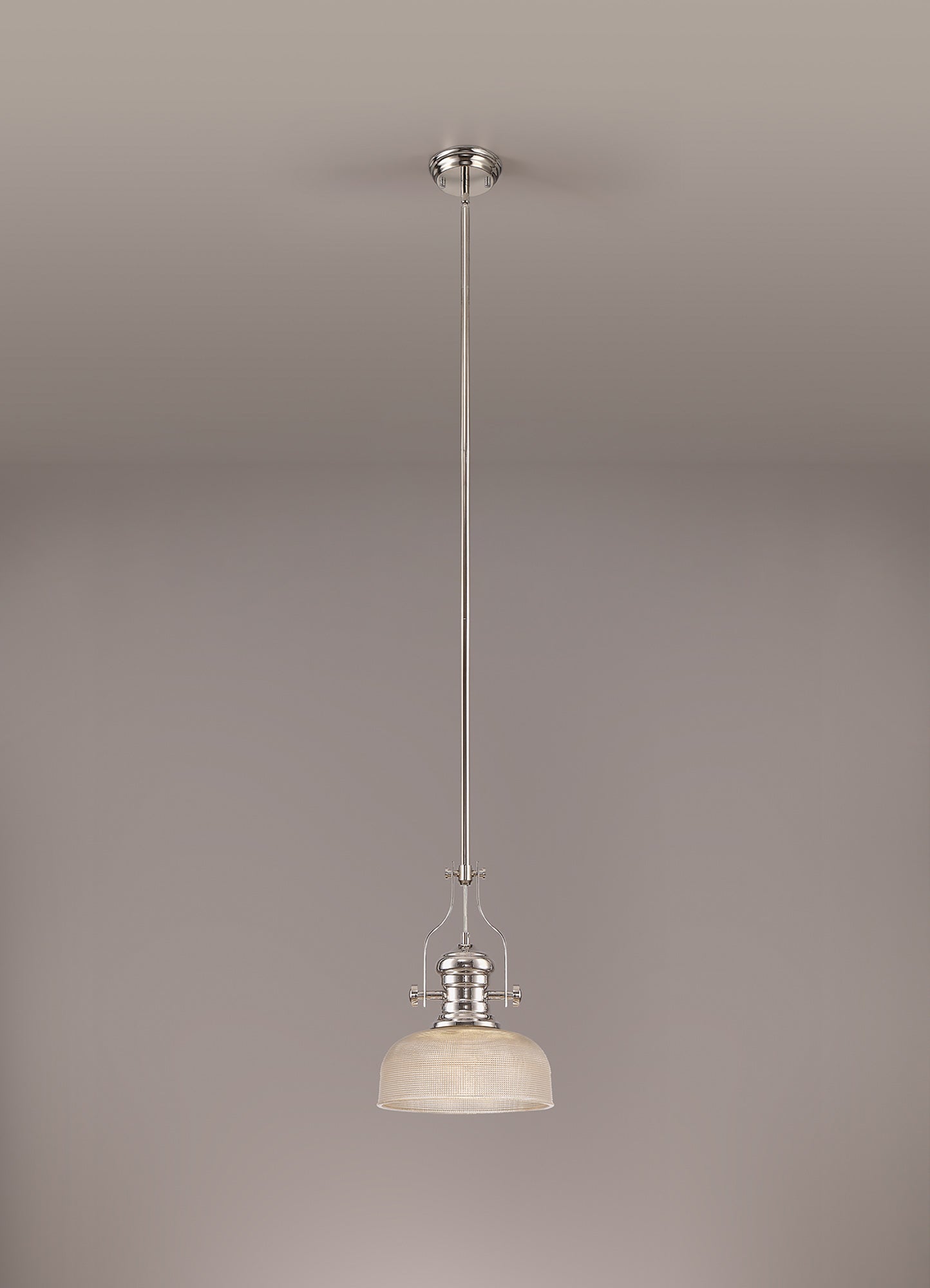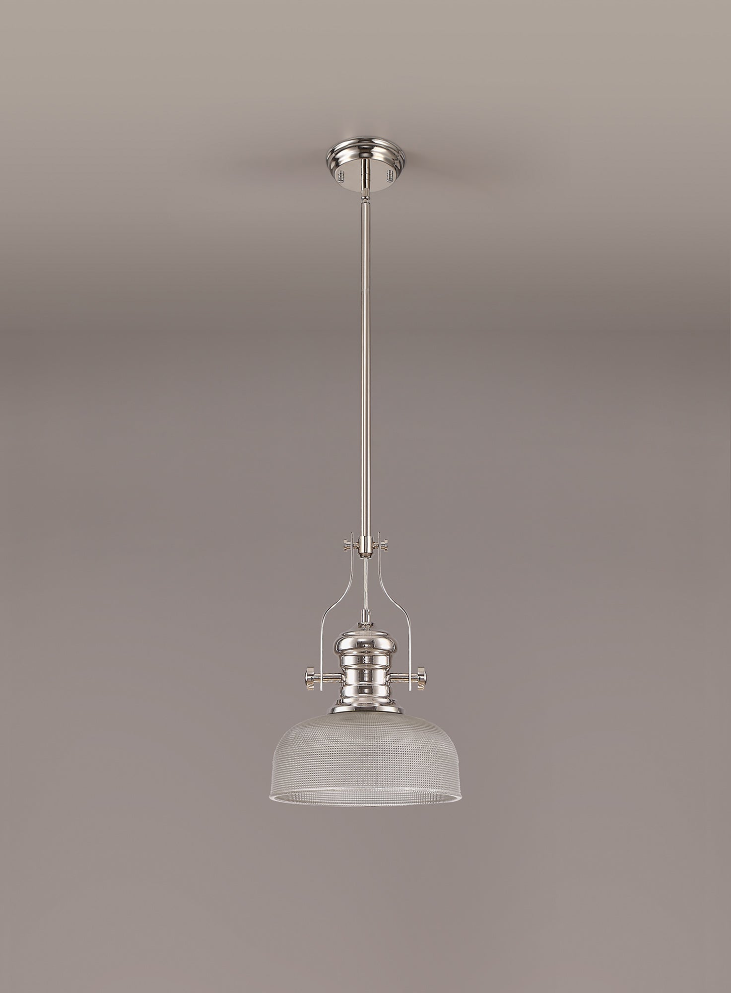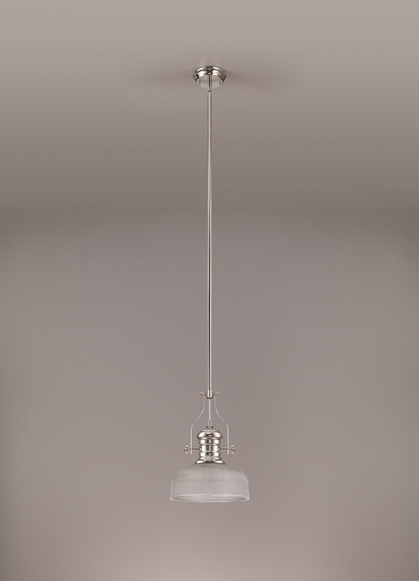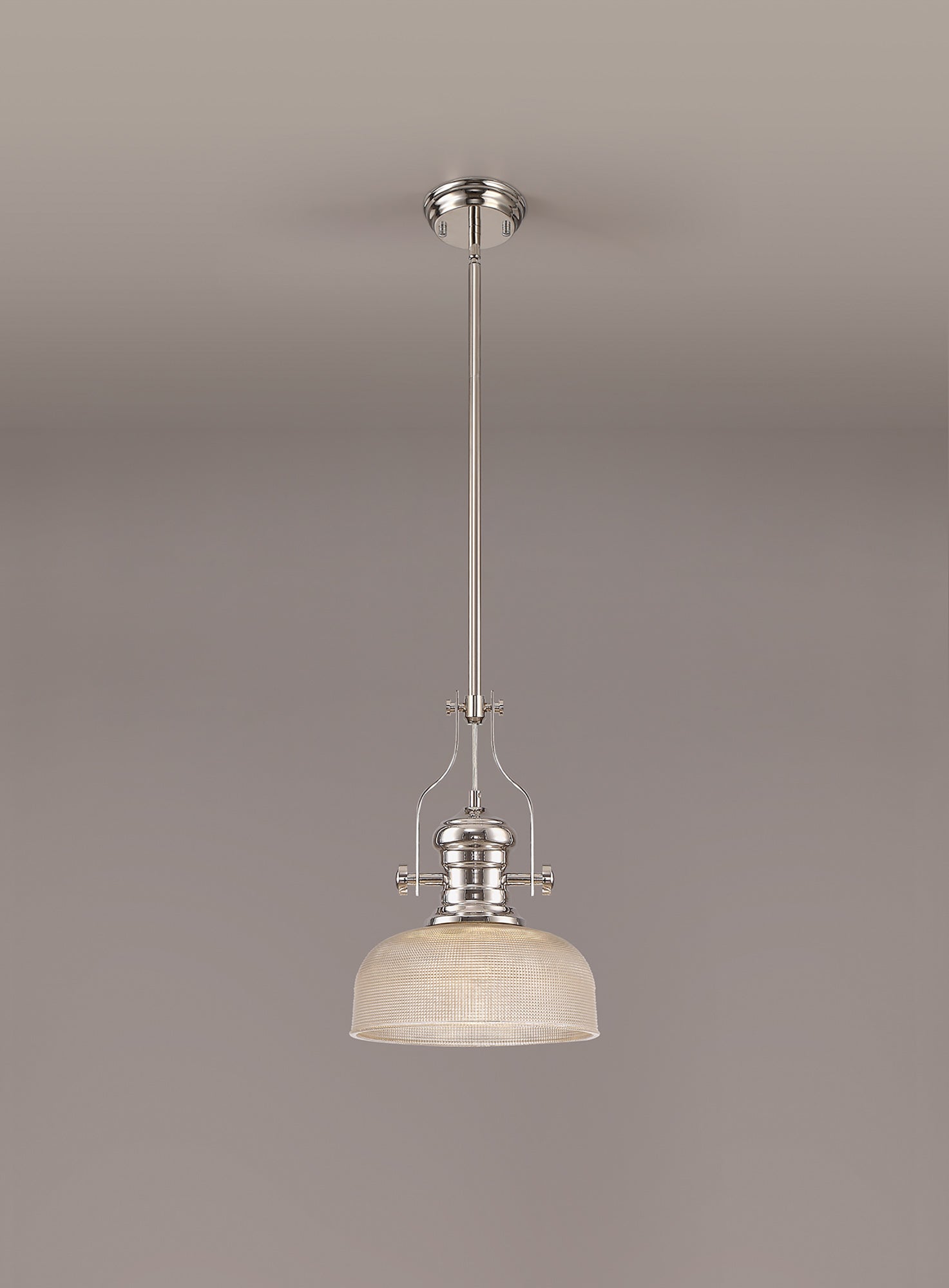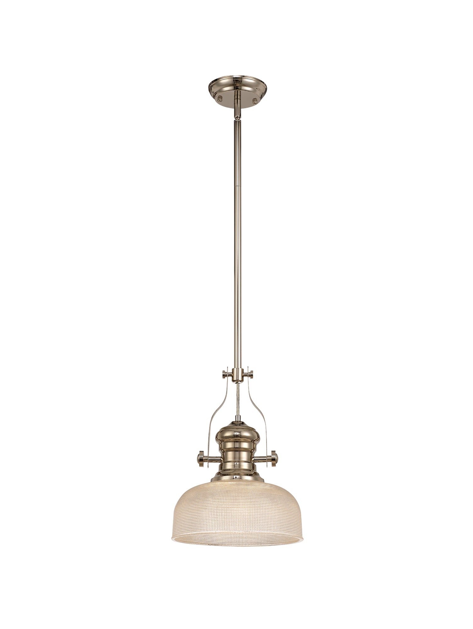 Docker 1 Light Pendant E27 With 26.5cm Prismatic Glass Shade, Polished Nickel/Clear