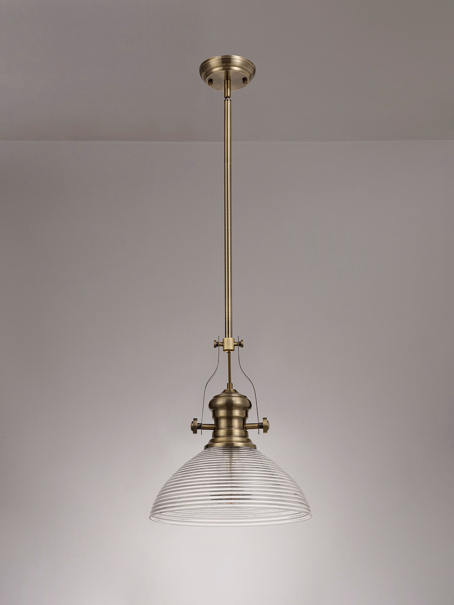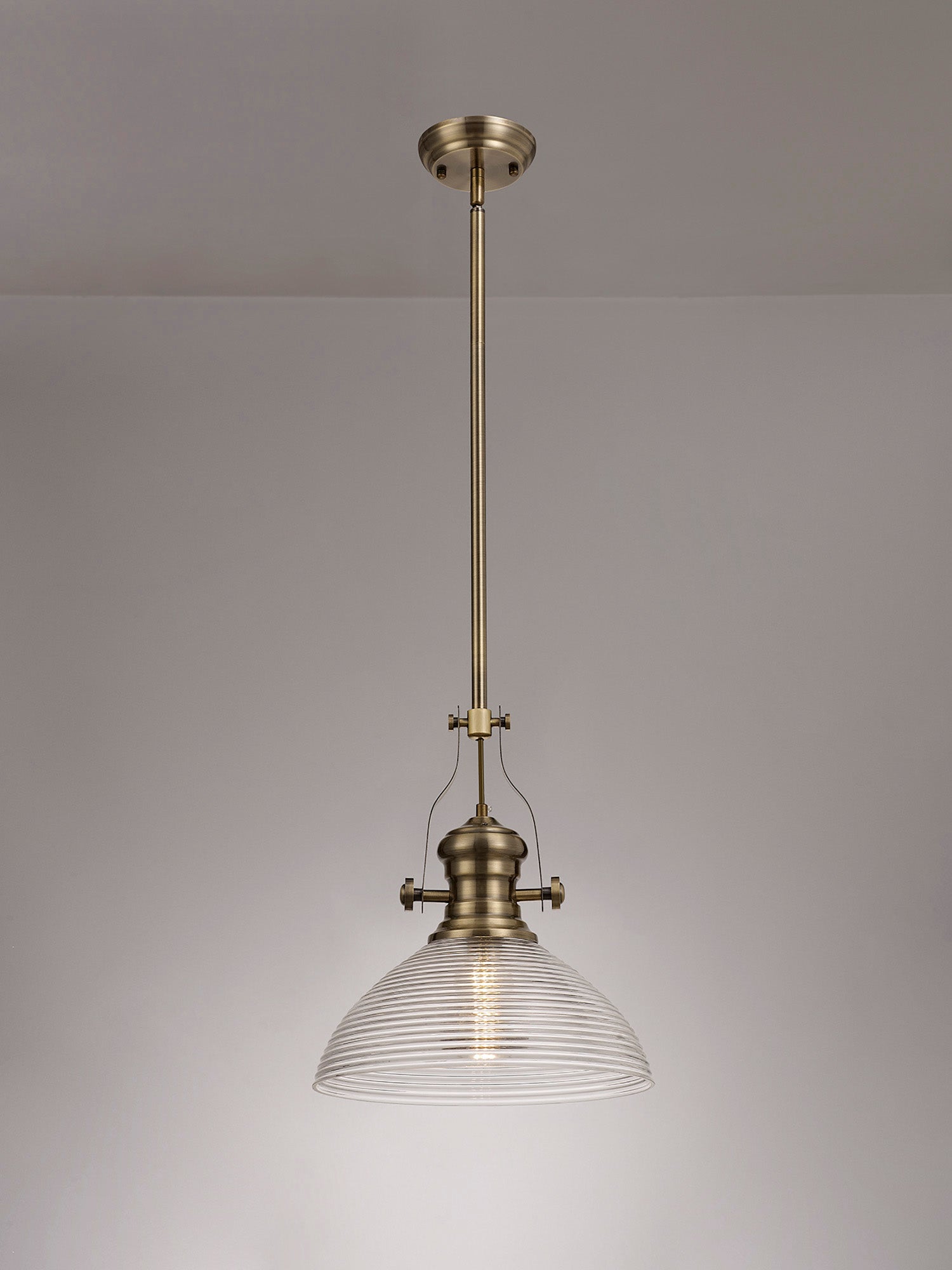 Docker 1 Light Pendant E27 With 33.5cm Prismatic Glass Shade, Polished Nickel/Clear