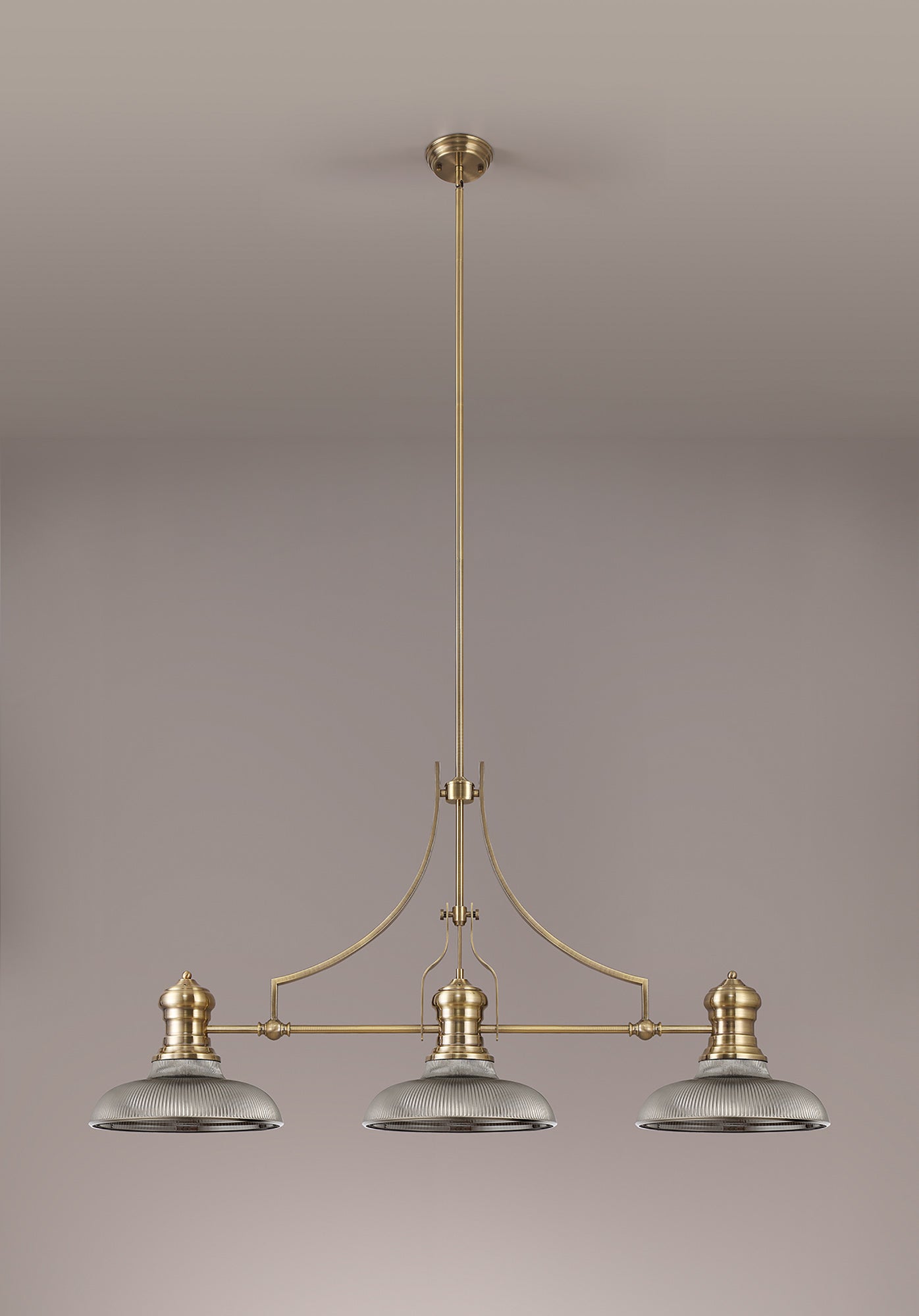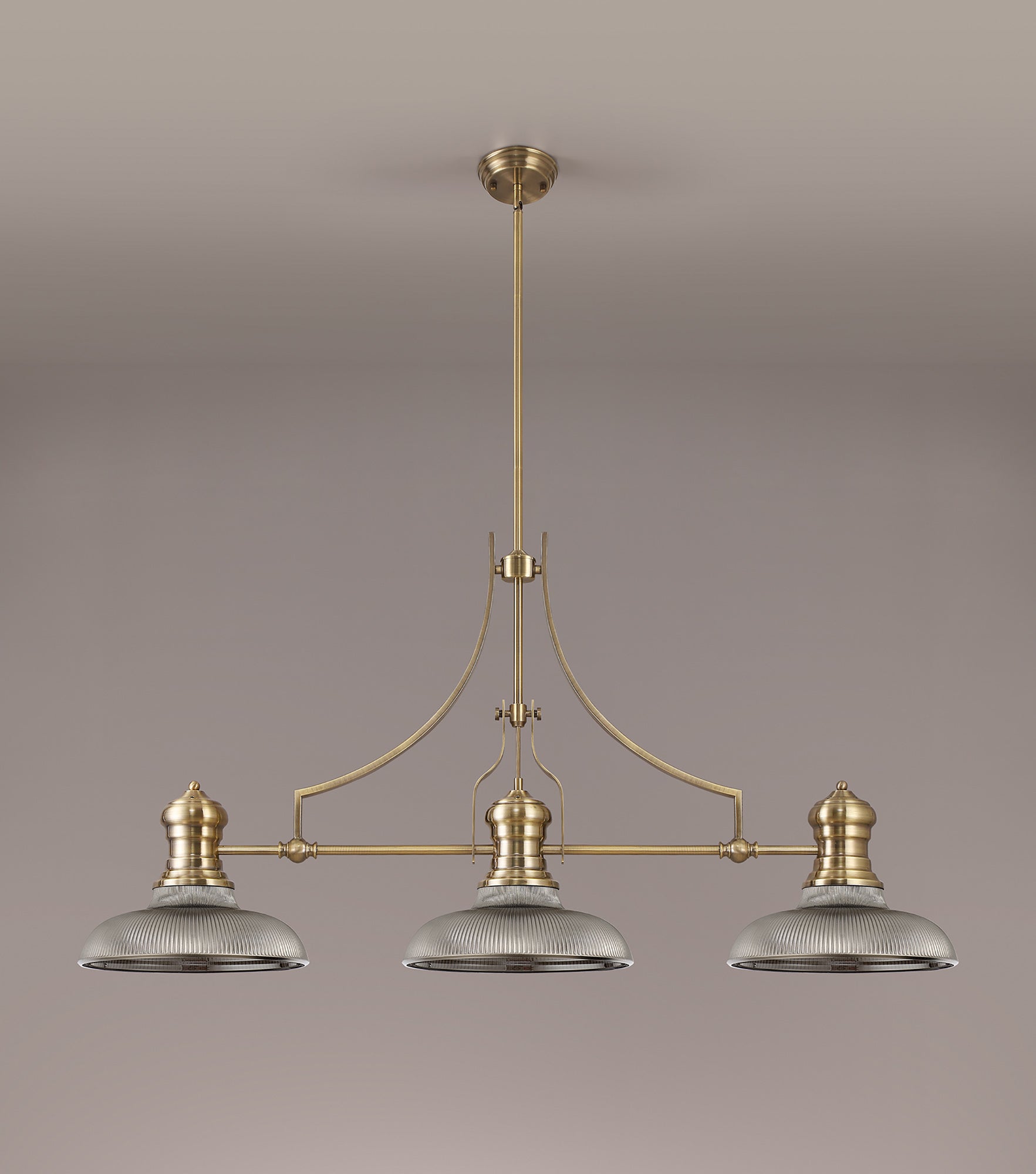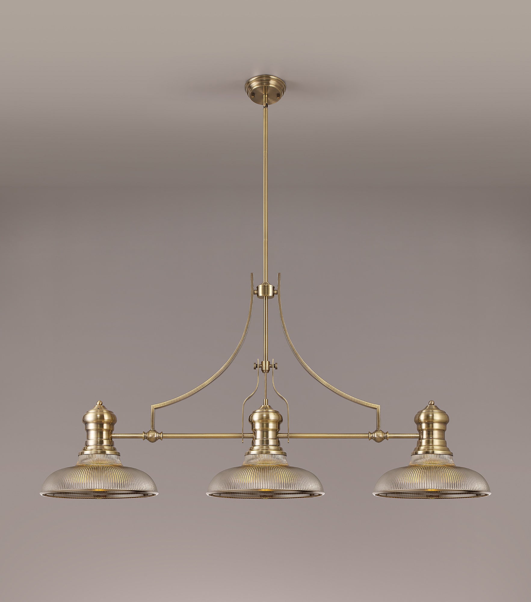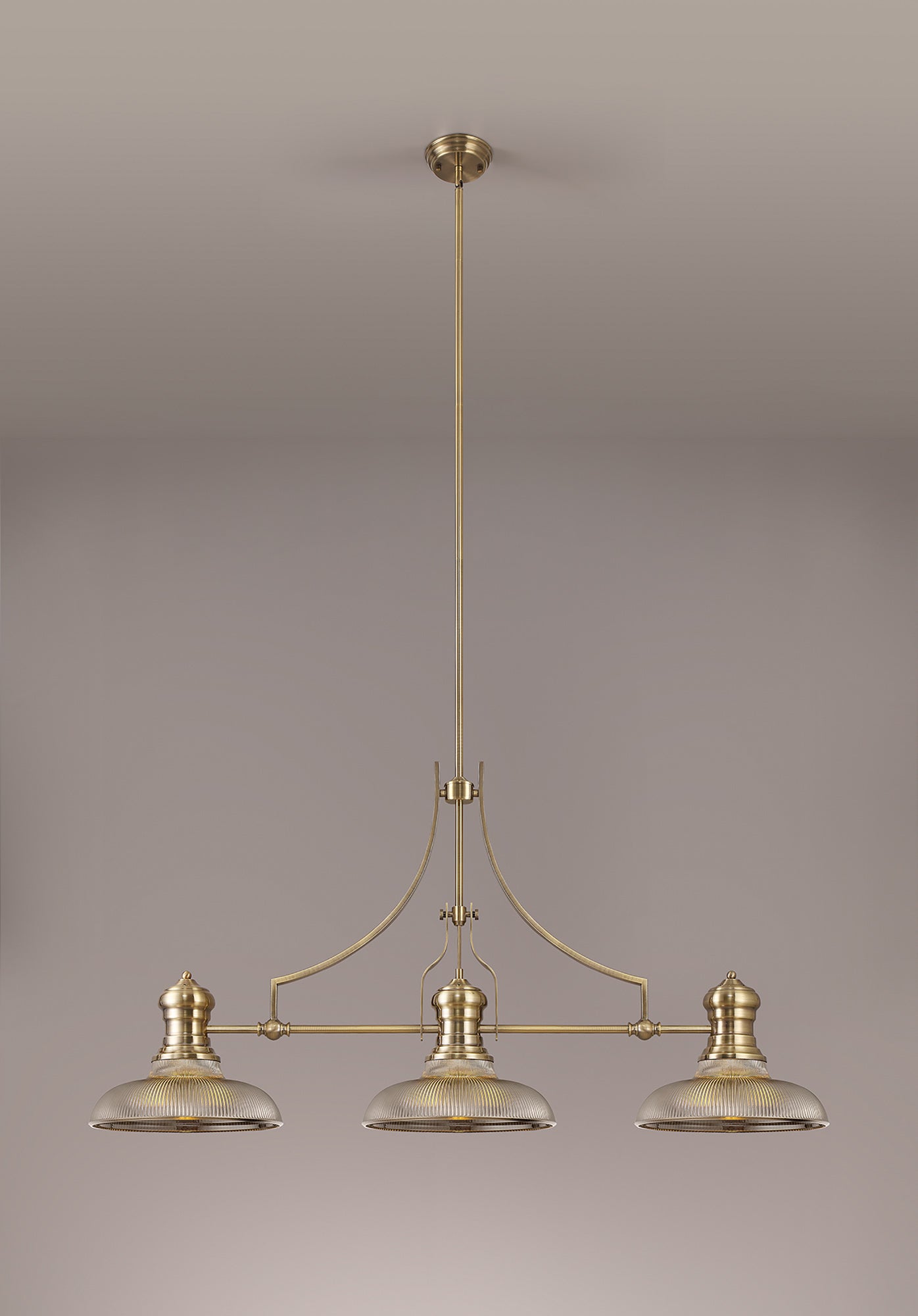 Docker 3 Light Linear Pendant E27 With 30cm Round Glass Shade, Antique Brass, Smoked