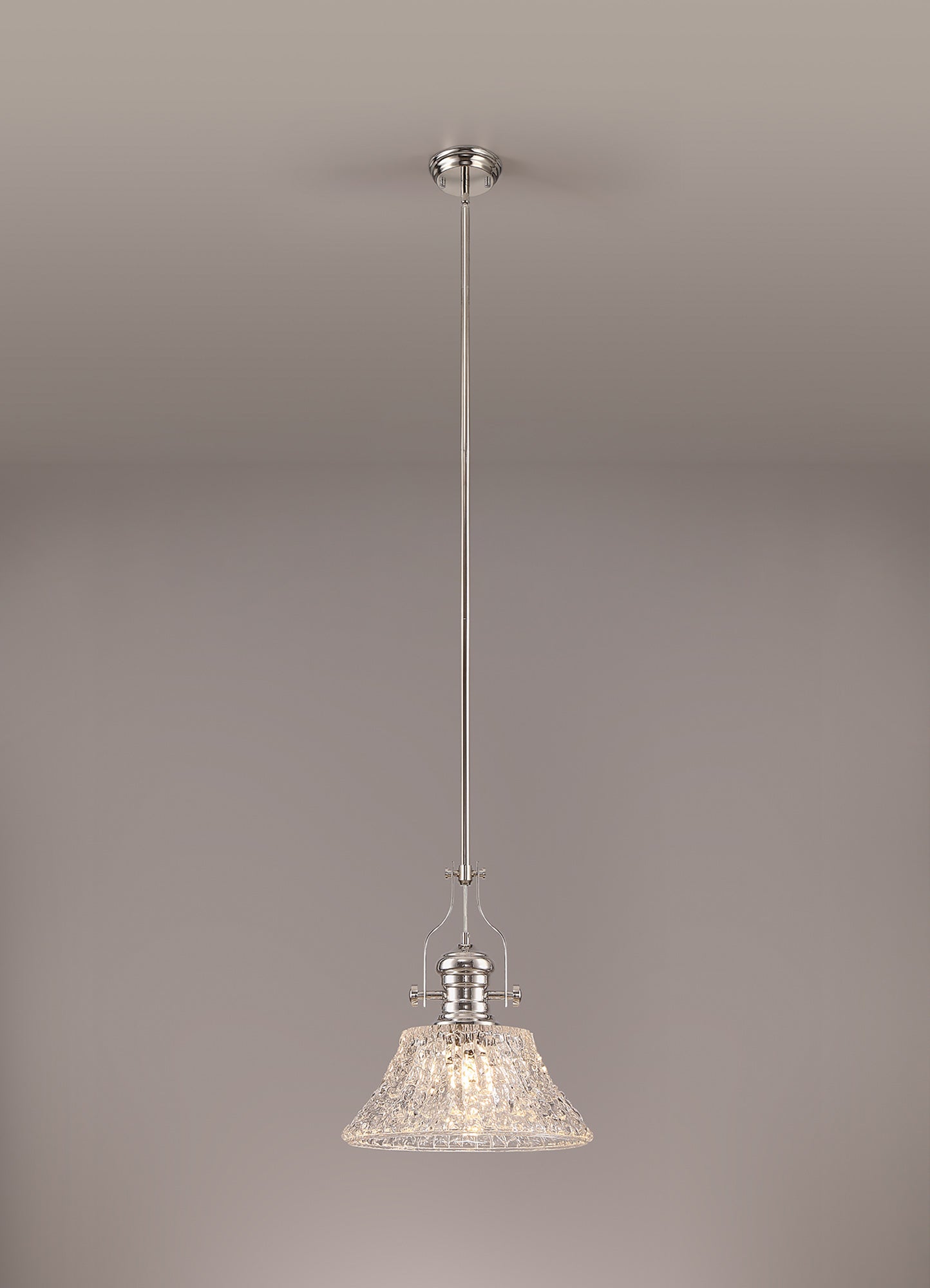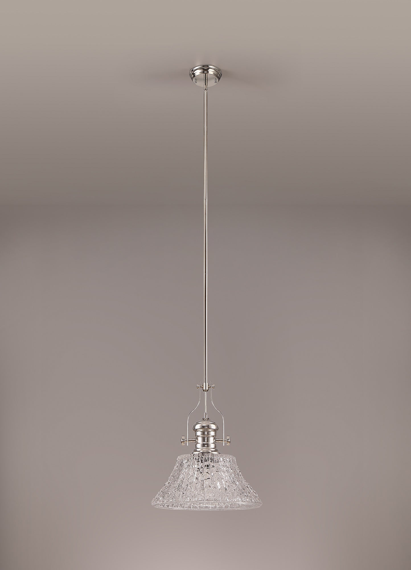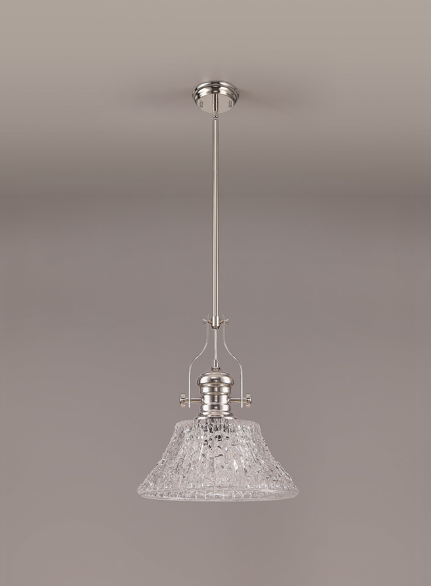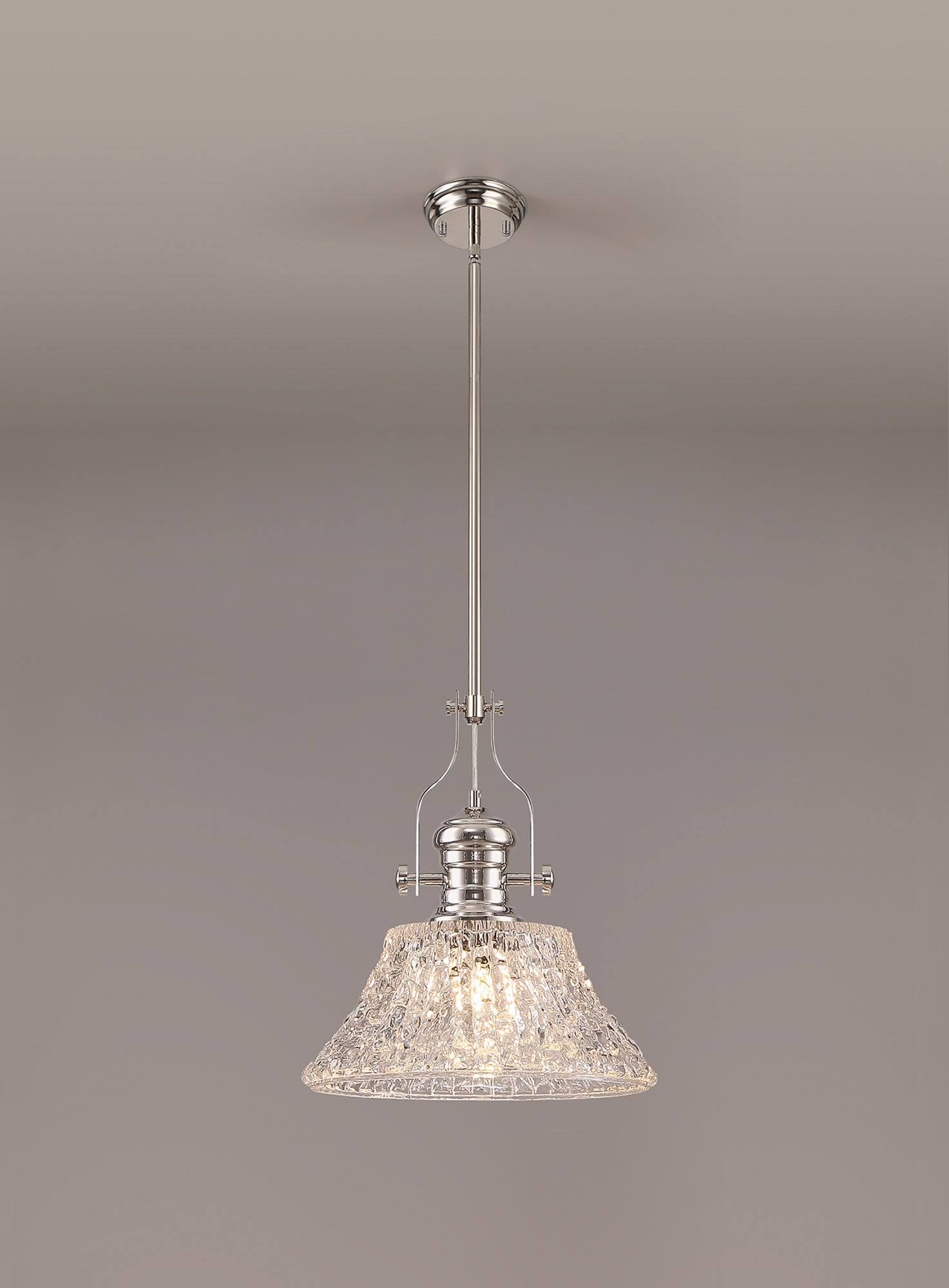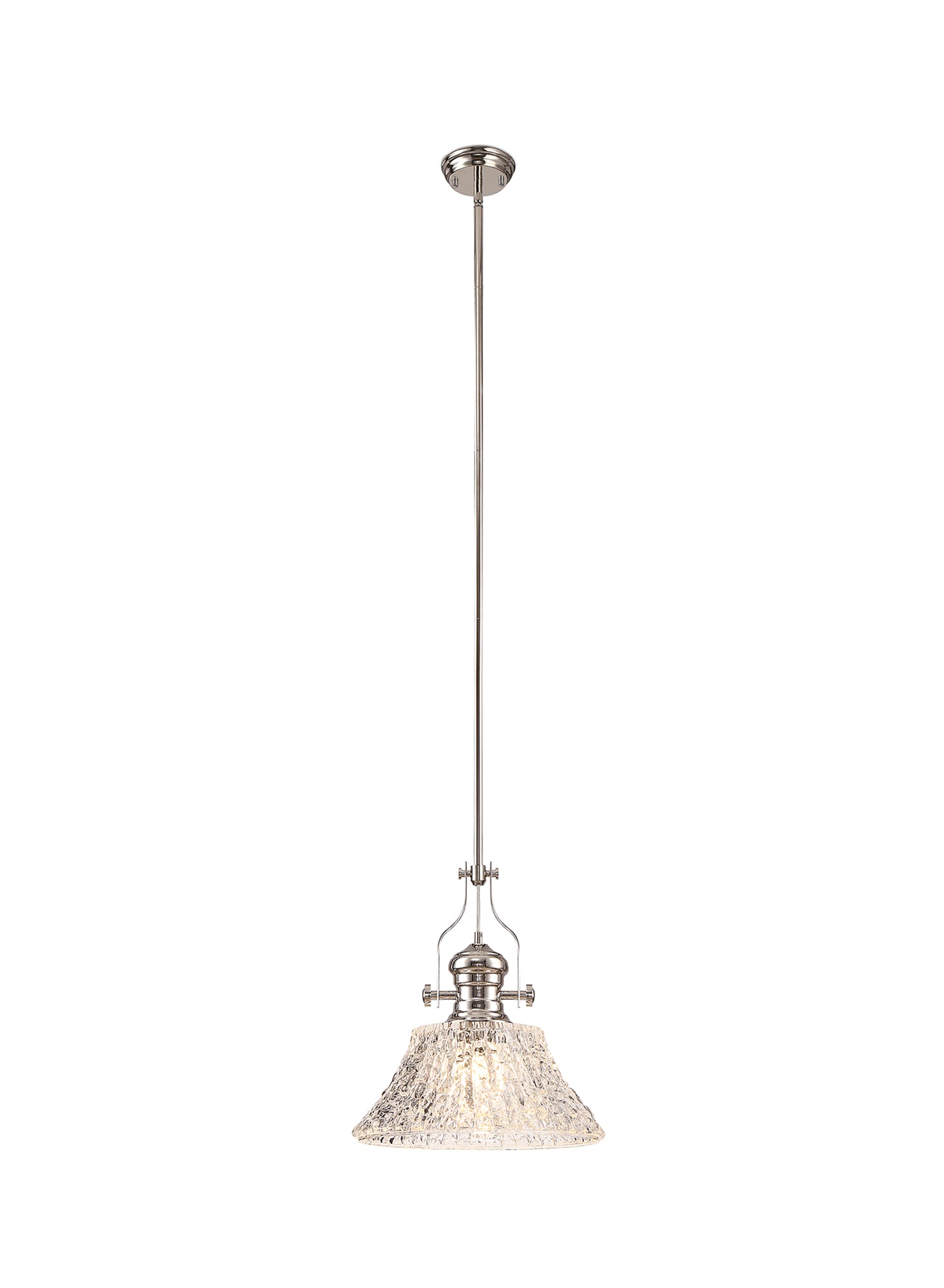 Docker Pendant With 38cm Patterned Round Shade, 1 x E27, Polished Nickel/Clear Glass LOK104653